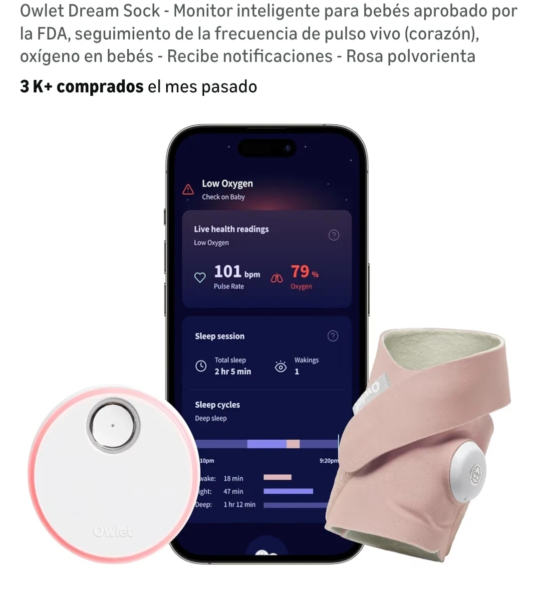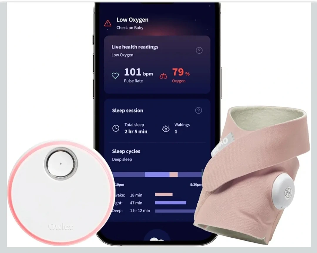This Owlet Dream Sock is designed to grow with your baby and monitor their health. It tracks pulse rate and oxygen levels, with notifications sent to your phone. Fabric construction. Suitable for babies up to 30 lbs.