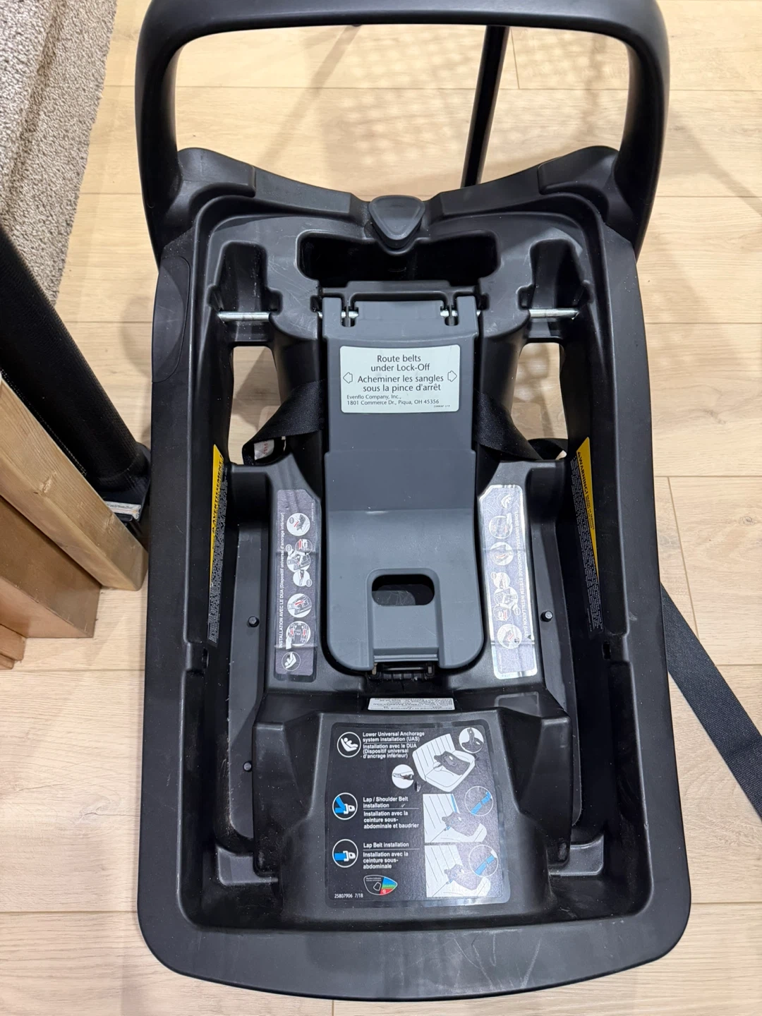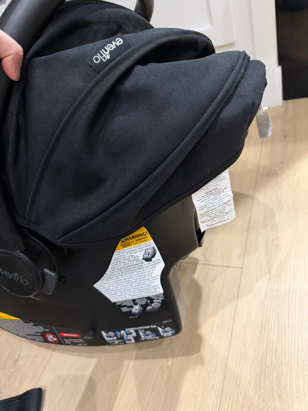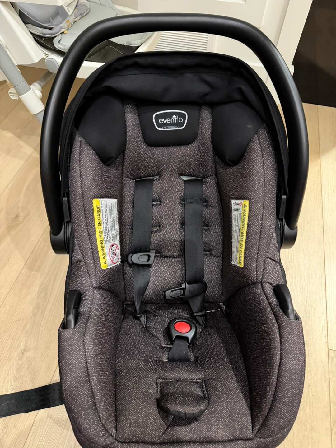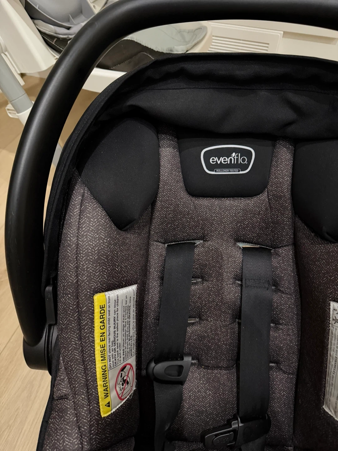 Evenflo LITEMAX infant car seat in a grey herringbone pattern. This car seat is rollover tested. Includes the car seat base. This is a great option for transporting your little one safely.
