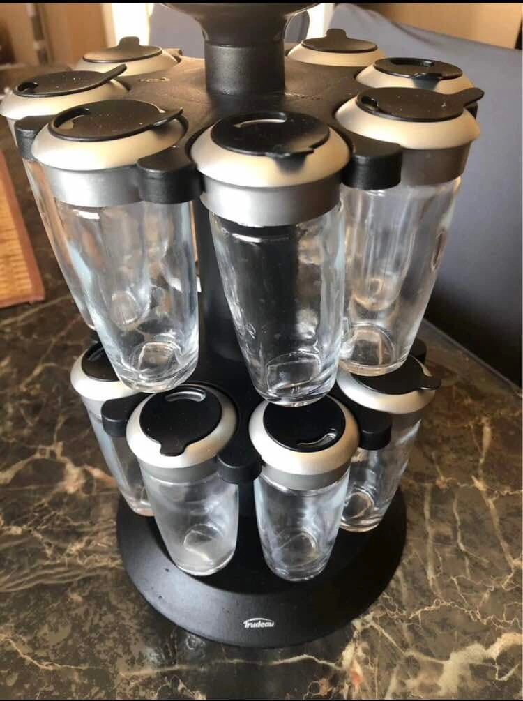 Buy & SellTrudeau Spice Rack carouselTrudeau Spice Rack carouselFreeRotating spice rack with 16 glass jars. Black and silver.ConditionLike newWHERE TO MEETCheck LocationView MapSELLERverifiedCzelSoutheast Calgary1164 reviews0 chats·0 favorites·36 viewsSEND CHAT TO SELLERHi Czel! I’m interested in your listing.Hi Czel! I’m interested in your listing.Get the Karrot app to chatSign In to chat