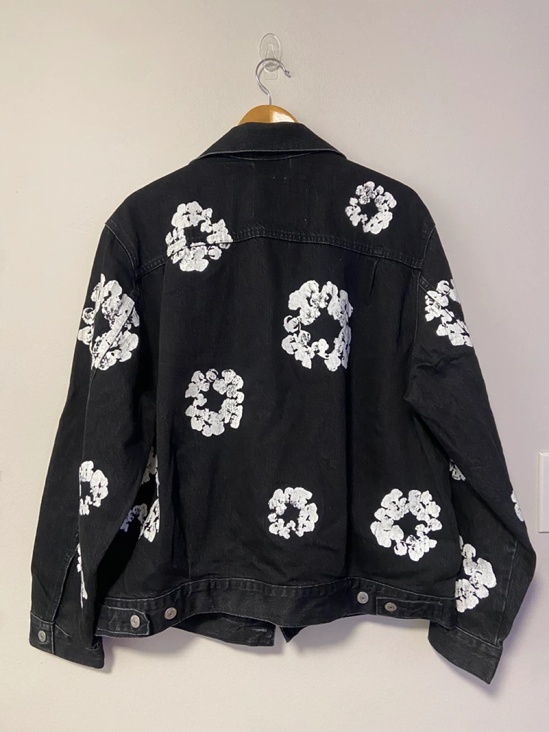 Levi Strauss & Co. and Denim Tears have collaborated on this cool jacket! It's a size Large and features a unique floral design on a black denim base. Perfect for adding a bit of style to your wardrobe