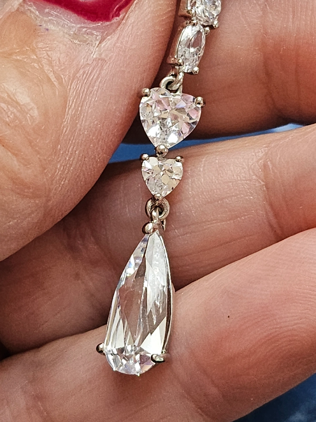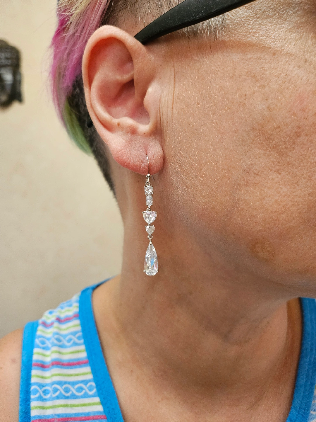 Sparkly drop earrings featuring cubic zirconia stones in different shapes. They're in great condition and ready to add a touch of elegance to any outfit!