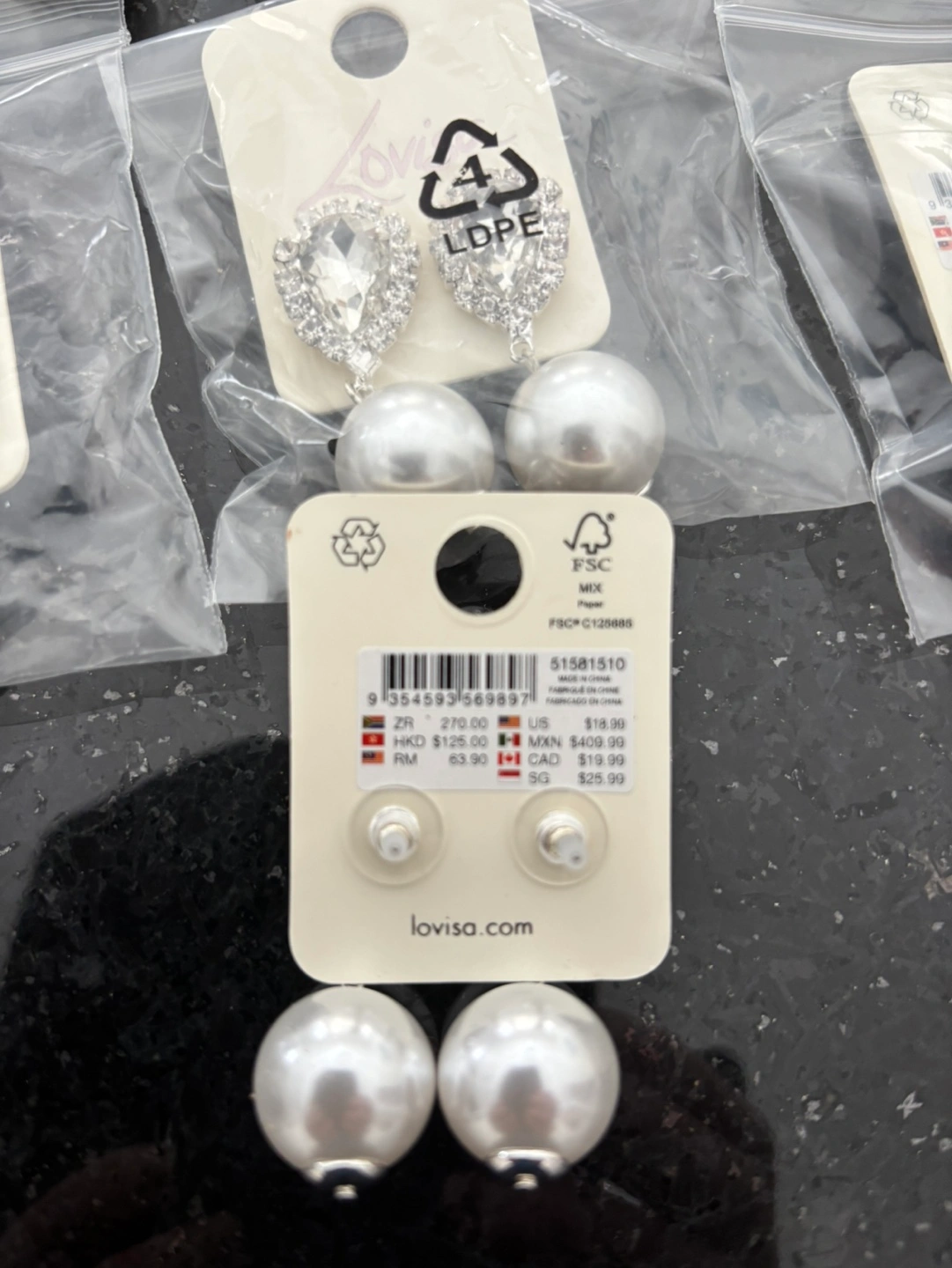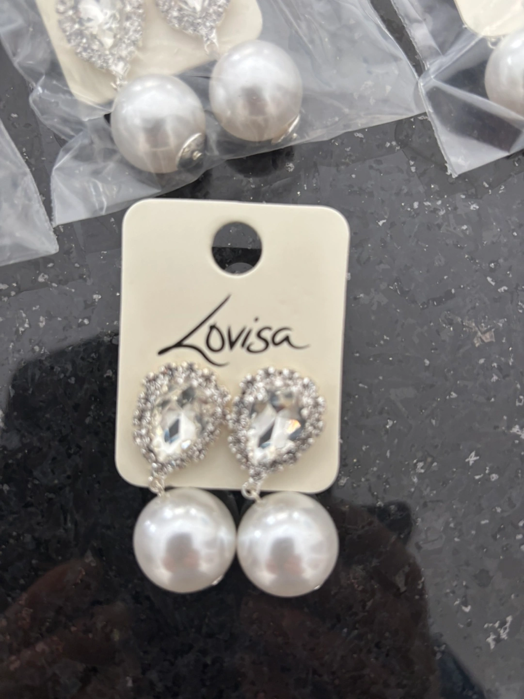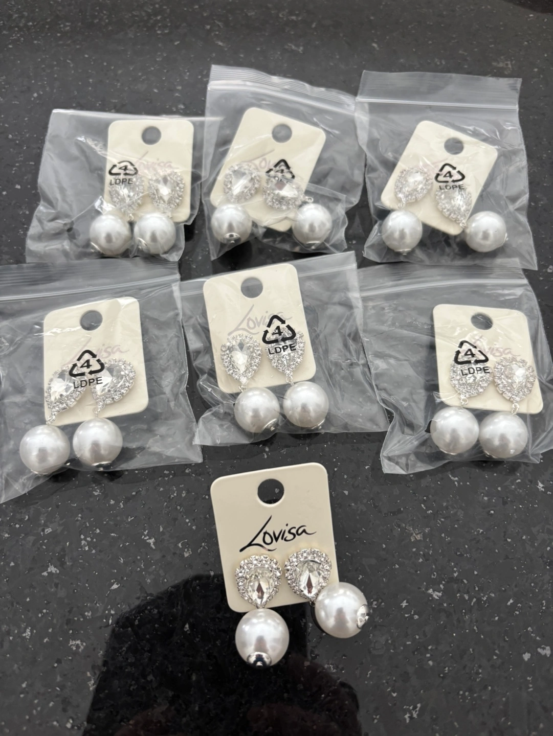 10Stunning pearl drop earrings. Adorned with exquisite cubic zirconia crystals and shimmering pearls. Brand new never worn, were purchased for bridal gift but decided on something else. They are $10.00 each. Material: Crystal, Cubic Zirconia