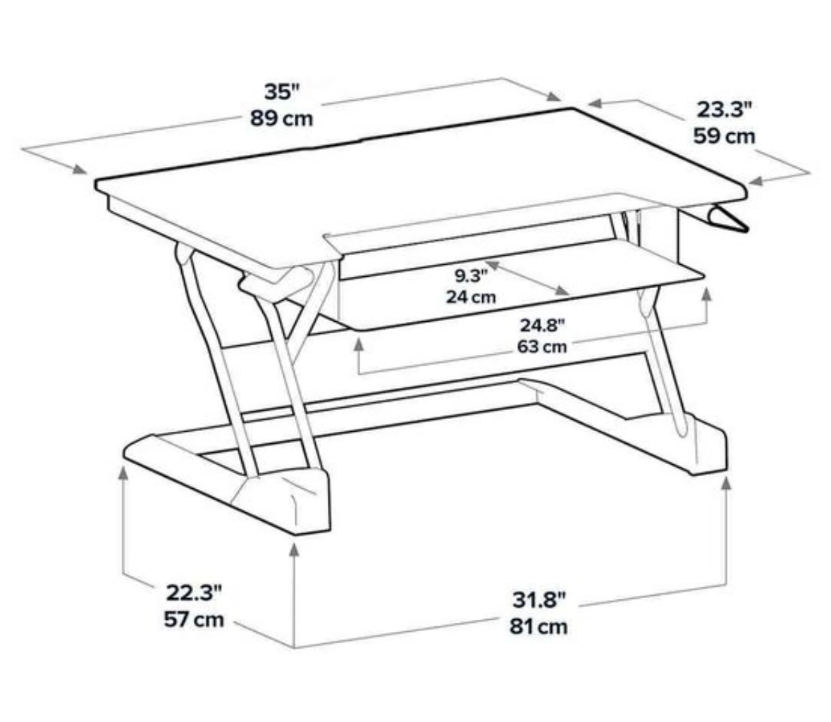 You can add this to any desk or table to make it a standing desk; goes up and down with ease and can hold a lot of weight. Held two monitors a computer and keyboard.