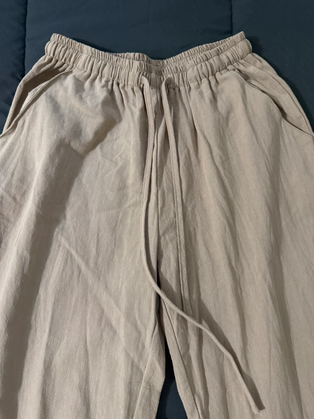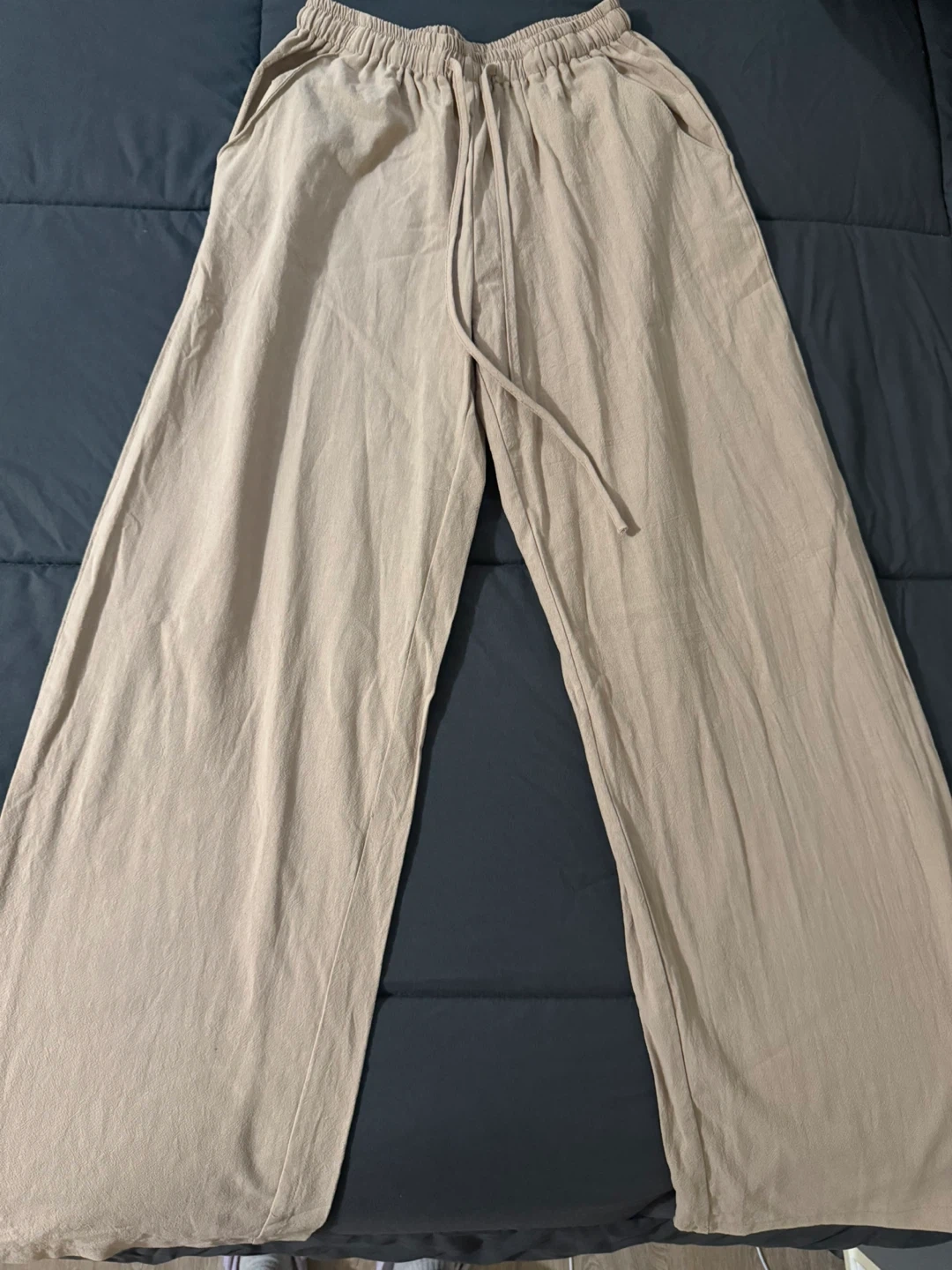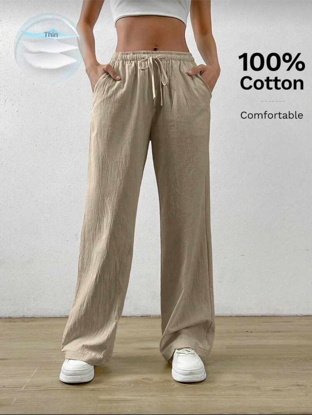 SHEIN wide leg pants with a drawstring waist. Made of 100% cotton and comfortable. These pants are thin and breathable. Perfect for casual wear!