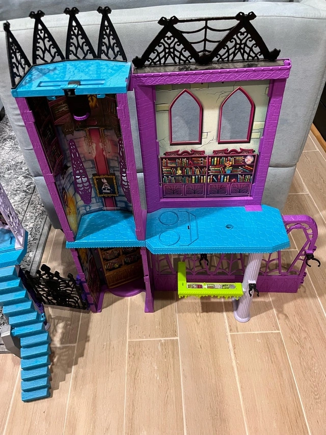 Monster High Deadluxe High School Playset — Large Fold-out Dollhouse — See photo with measurements. Located near McCowan and Sheppard area in Scarborough. Condition: Used - Good. Payment: Cash accepted.
