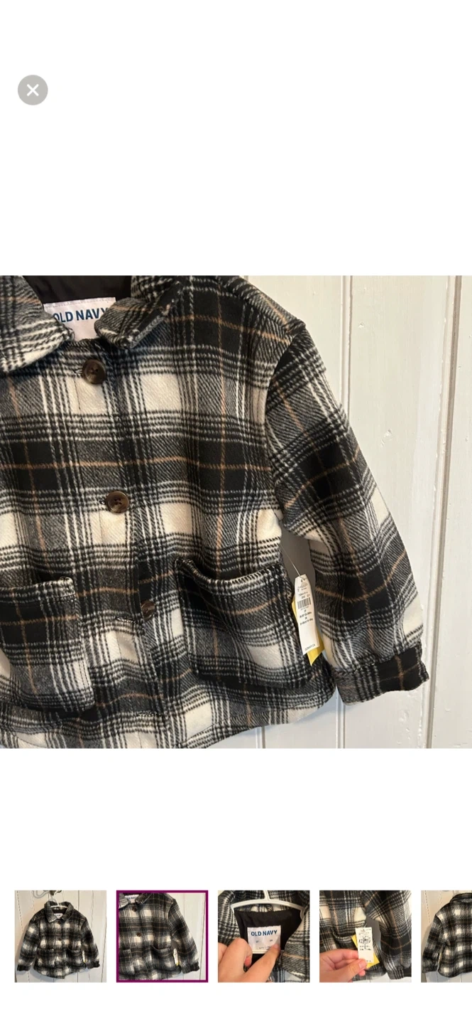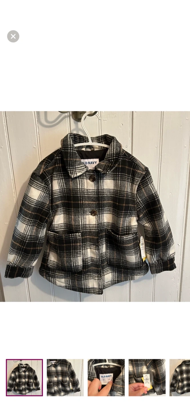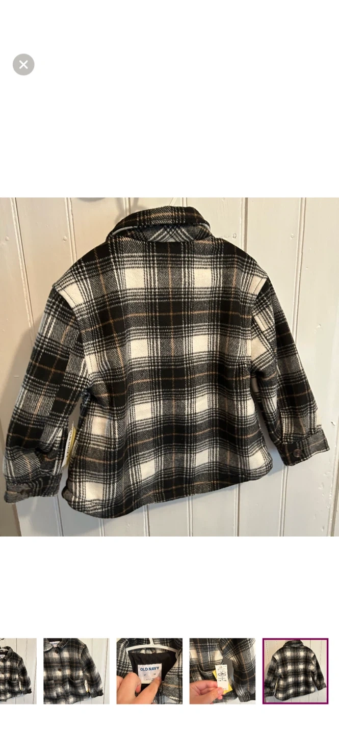 Old navy brand. Button up felt Shacket. Black & tan plaid. Size 3t. Brand new with tags