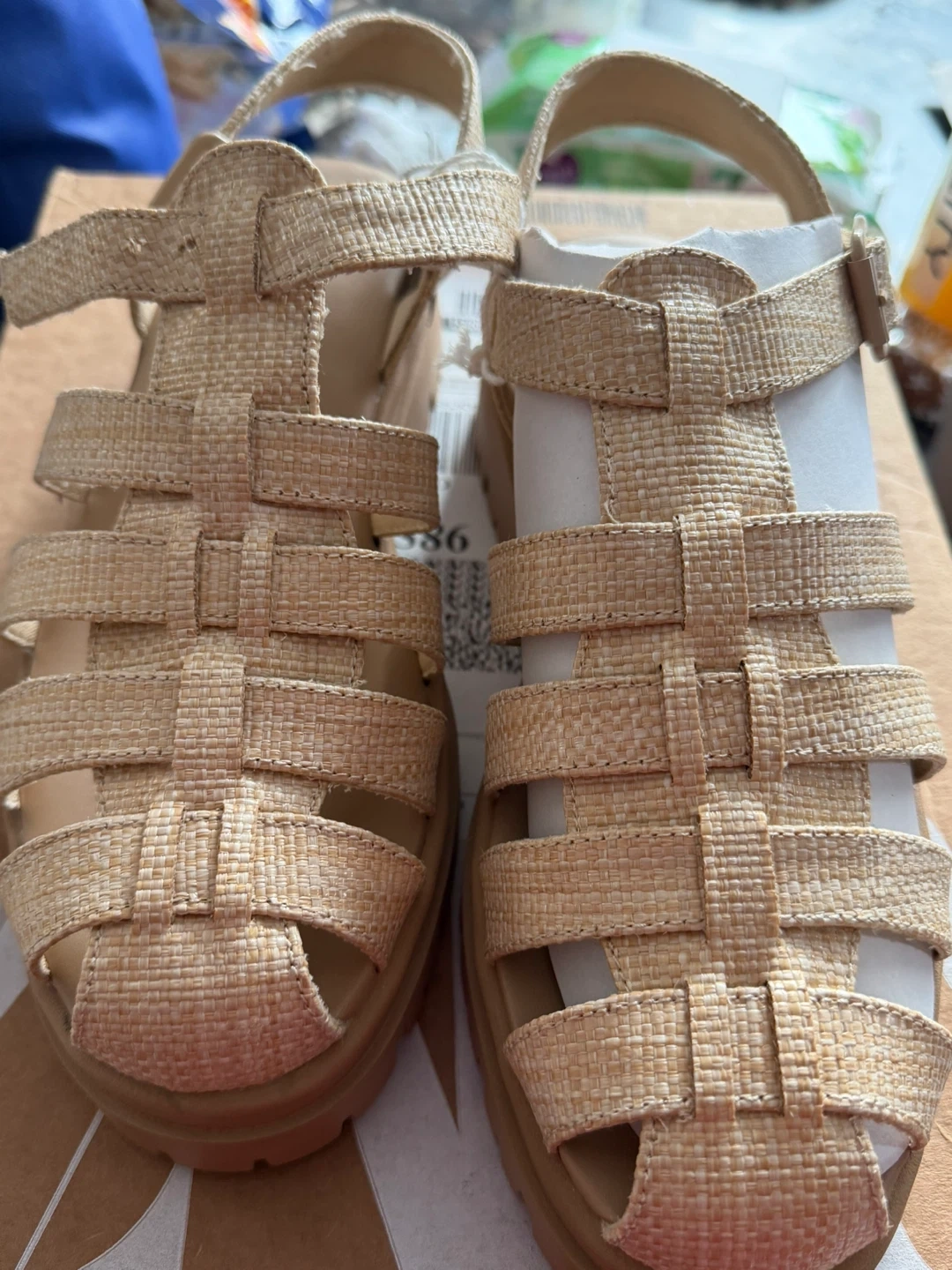 These American Eagle espadrille sandals feature a woven strappy design. They have an adjustable ankle strap and a cushioned footbed for comfort. Perfect for warm weather days!