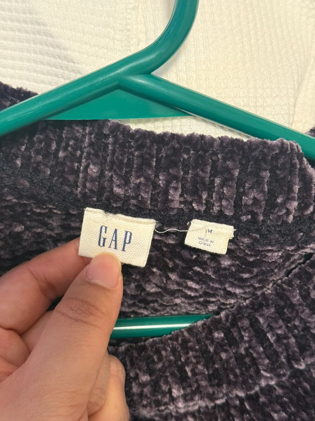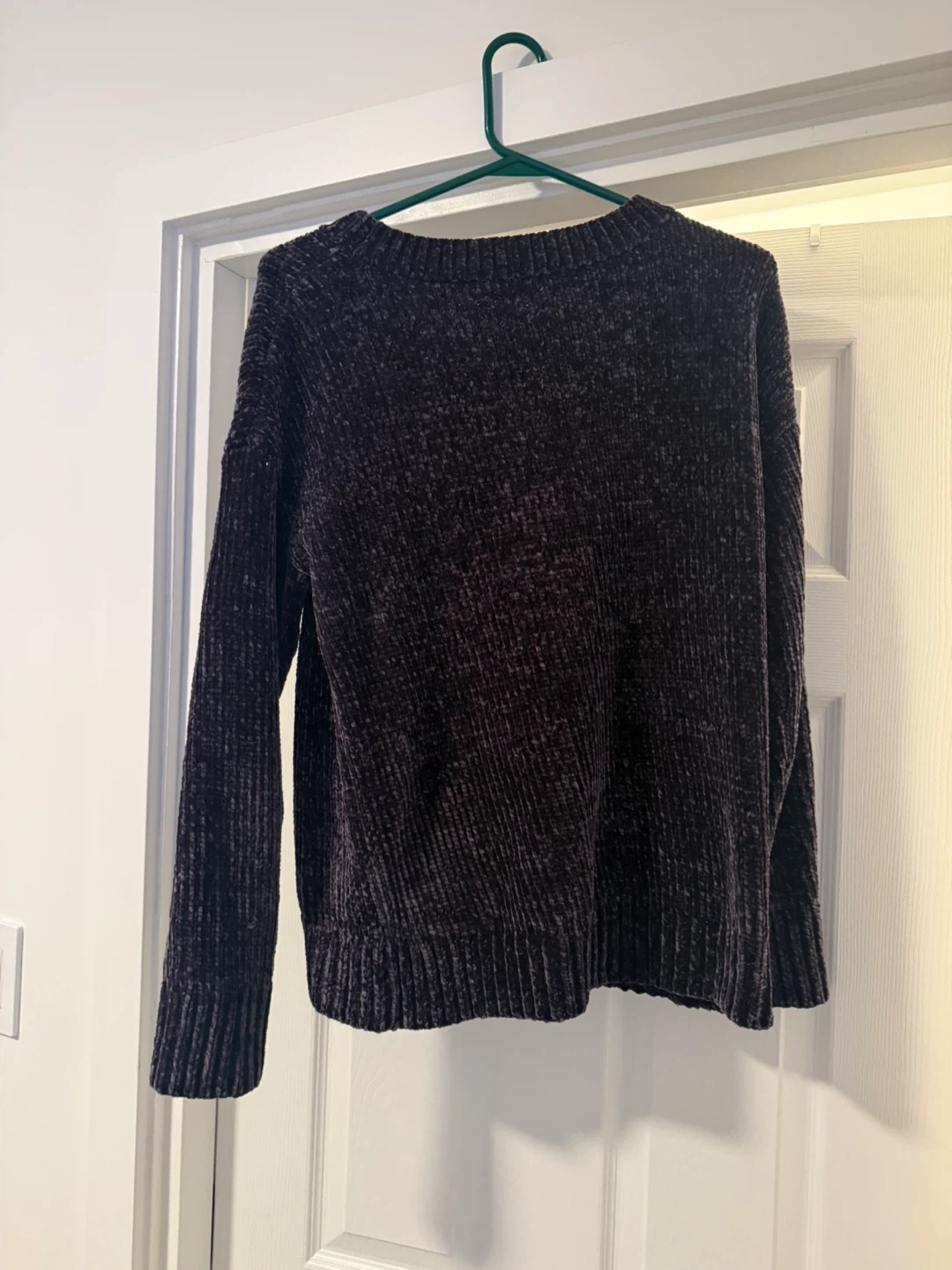 A cosy velour sweater from GAP. It's a size medium in a dark grey. I’ve had this sweater forever but never wore it.