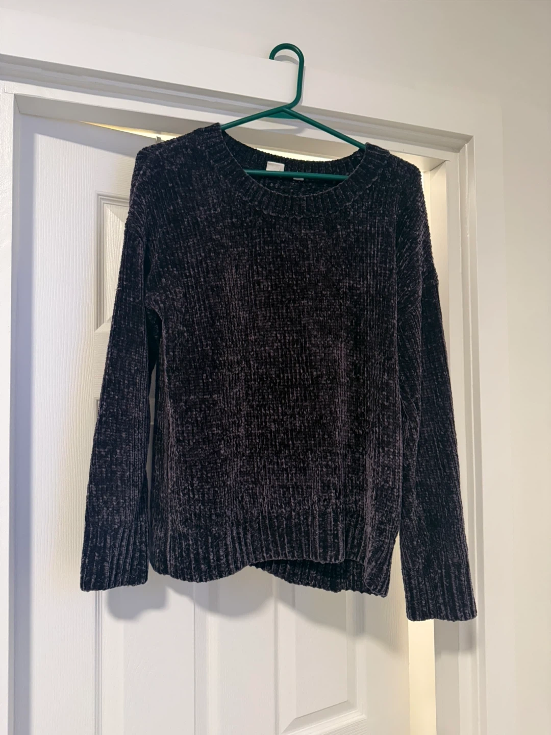 A cosy velour sweater from GAP. It's a size medium in a dark grey. I’ve had this sweater forever but never wore it.