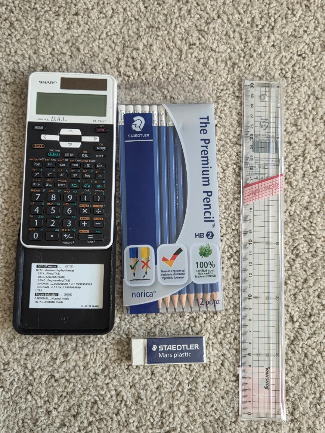 Also included are 12 Staedtler HB pencils and a Staedtler Mars plastic eraser.(new one)
