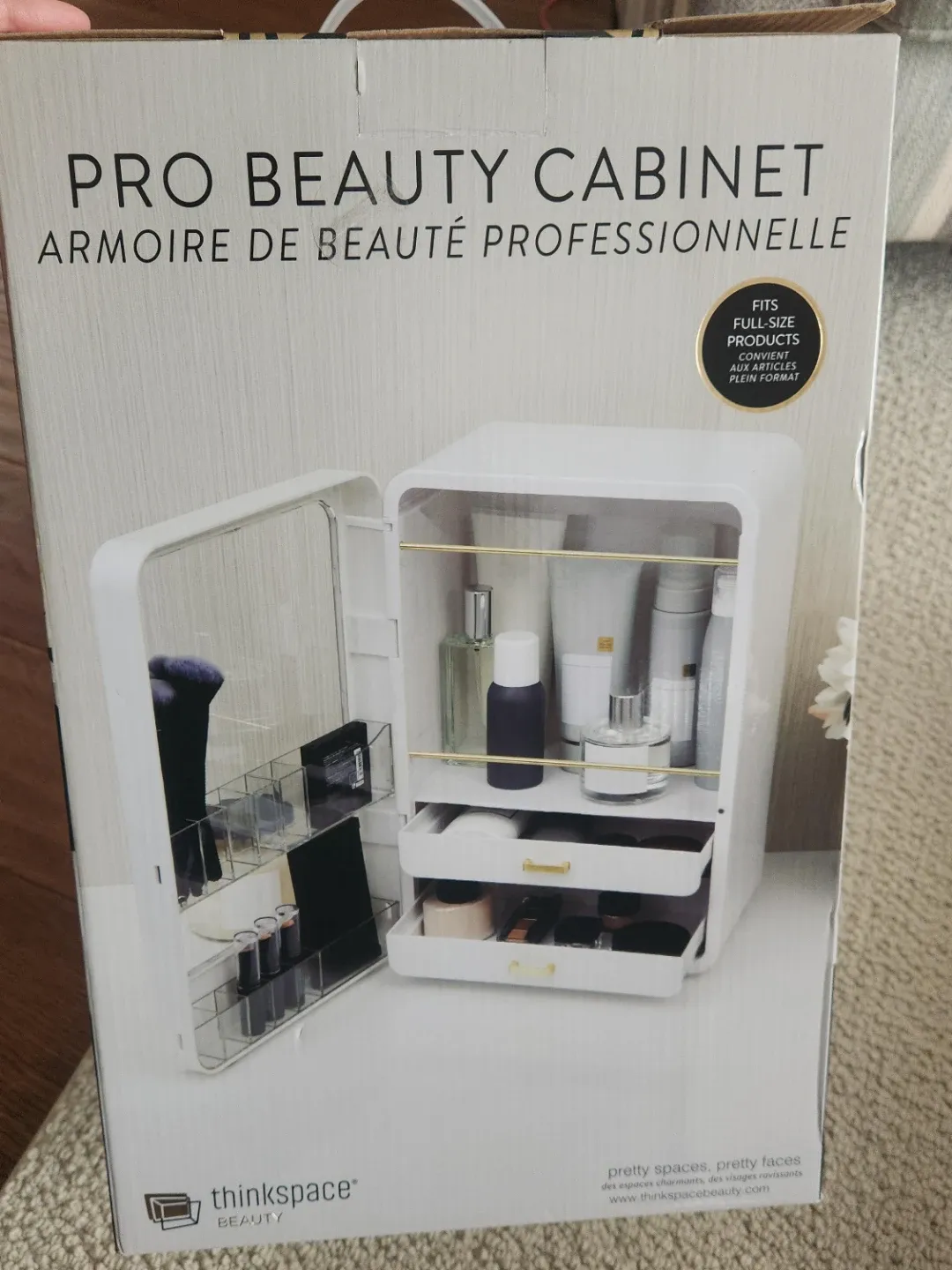 This Thinkspace Pro Beauty Cabinet is designed to store your cosmetics and skincare. It features multiple drawers and compartments for organization. Fits full-size products.
