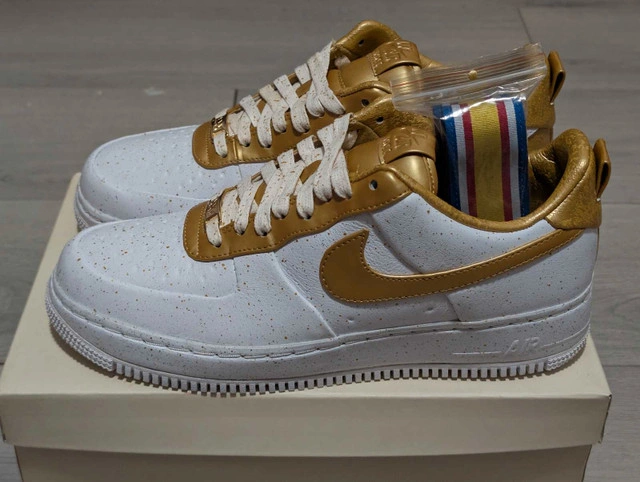Selling a brand new pair of Gold Medal Air Force 1 Low Premiums in size 8.5 with replacement box and are 100% authentic. Pickup is by Mississauga and Steeles or Shelbourne depending on time and day. Trades accepted: Pokemon Sealed/Slabs/SIR/SAR *Check other ads for more listings. Bundle deals available