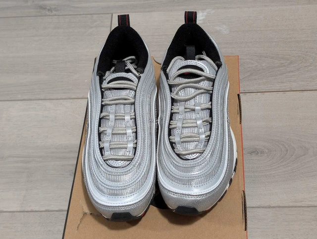 Looking to sell another pair from the closet. They are brand new with box and are 100% authentic. This time around it'll be a pair of Silver Bullet AM97's in size 5.5 Women's. Pickup is by Mississauga and Steeles or Shelbourne depending on time and day. Trades accepted: Pokemon Sealed/Slabs/SIR/SAR *Check other ads for more listings. Bundle deals available