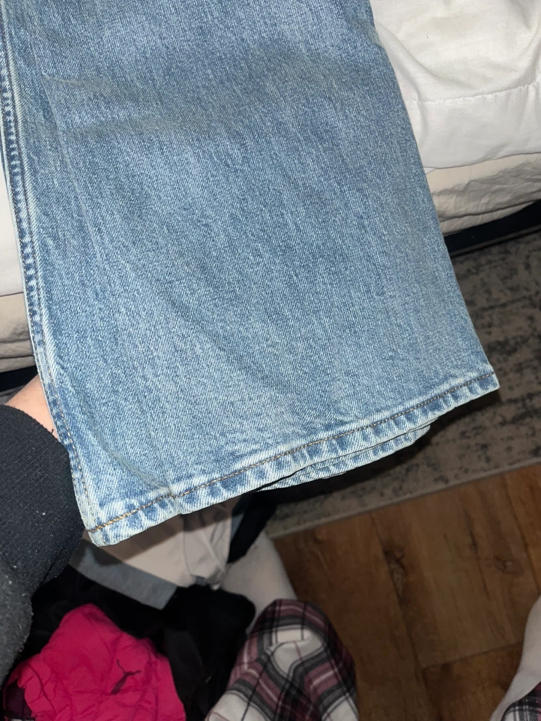 These are DENIM FORUM "The Chloe" hi-rise boot jeans. Made with a 27W waist size. They feature a classic blue denim wash.