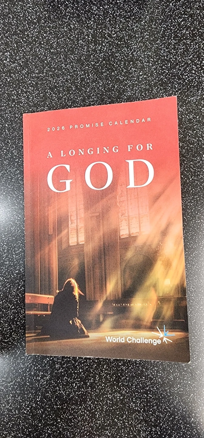 Use - This is the 2026 Promise Calendar with the title "A Longing For God". It's published by World Challenge. The calendar is designed to offer daily promises.