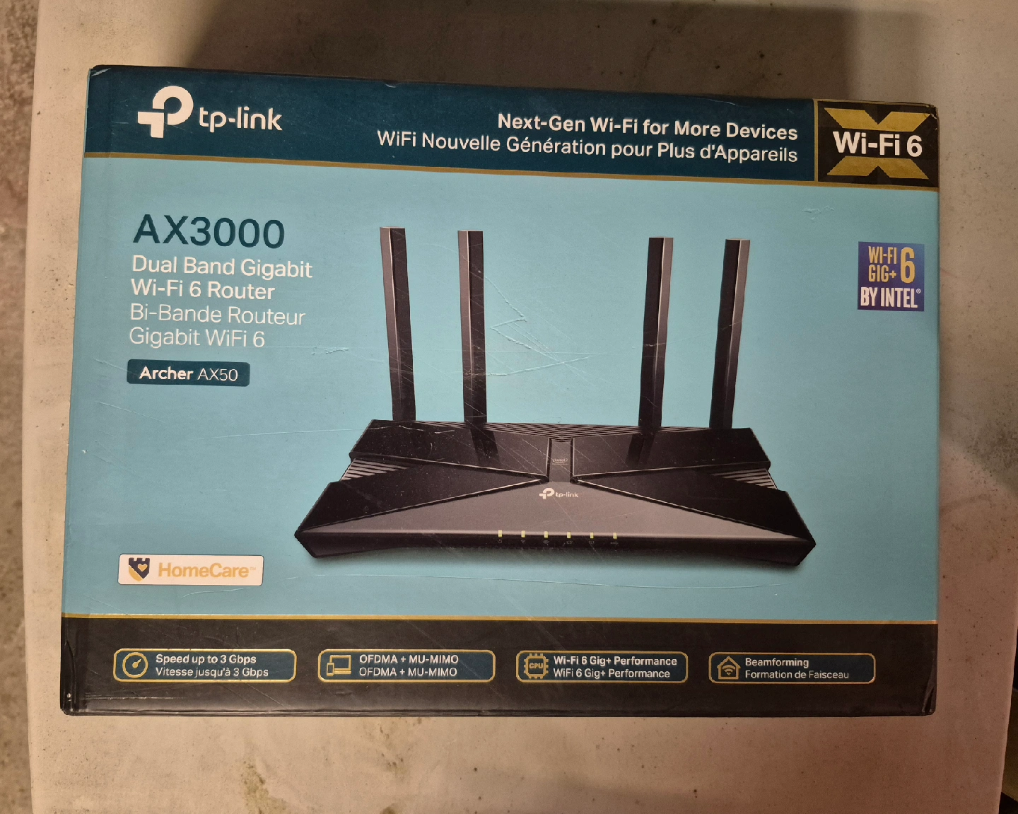 Selling a TP-Link Archer AX50 AX3000 dual-band Gigabit WiFi 6 router.