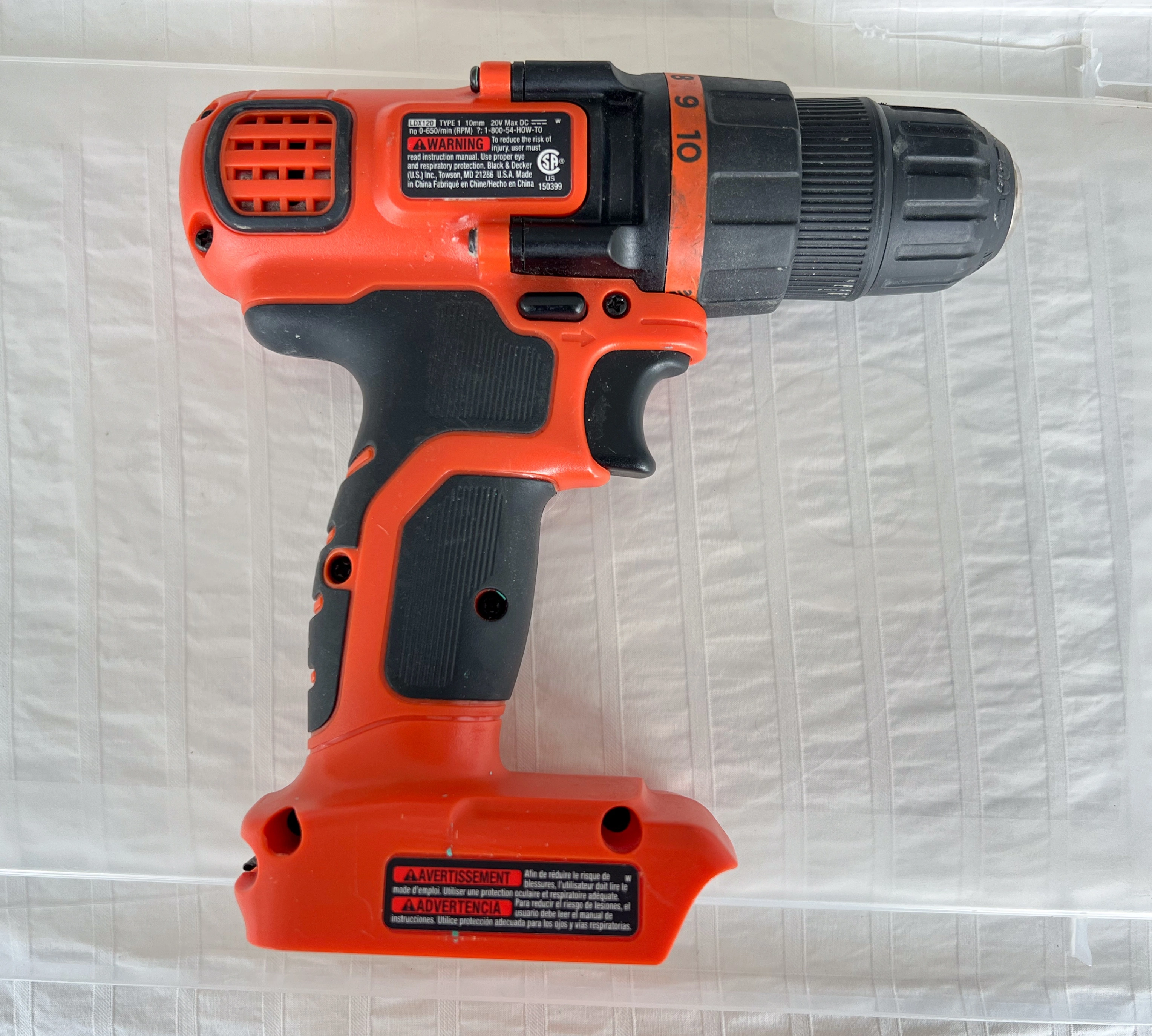 I'm selling a BLACK+DECKER 20V Lithium-Ion Cordless Drill (Model LDX120 - Tool Only).