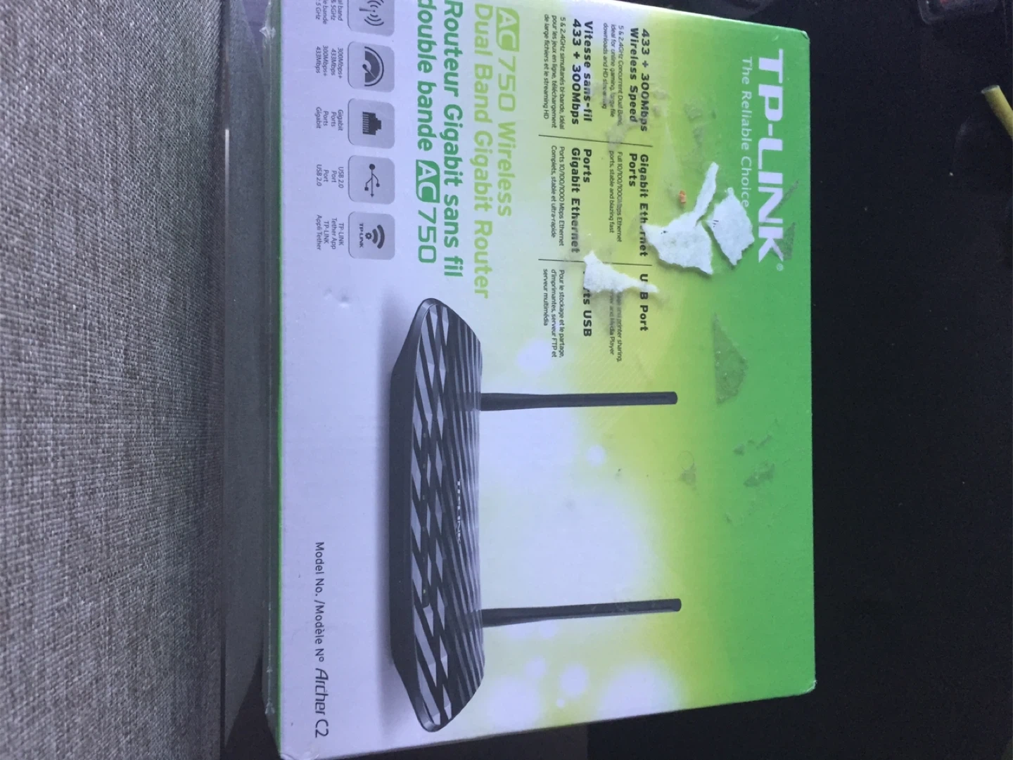 TP-Link AC750 Wireless Dual Band Gigabit Router. It's a dual-band router with 433Mbps on 5GHz and 300Mbps on 2.4GHz. Features gigabit Ethernet ports and includes 2 antennas. Great for home networking!