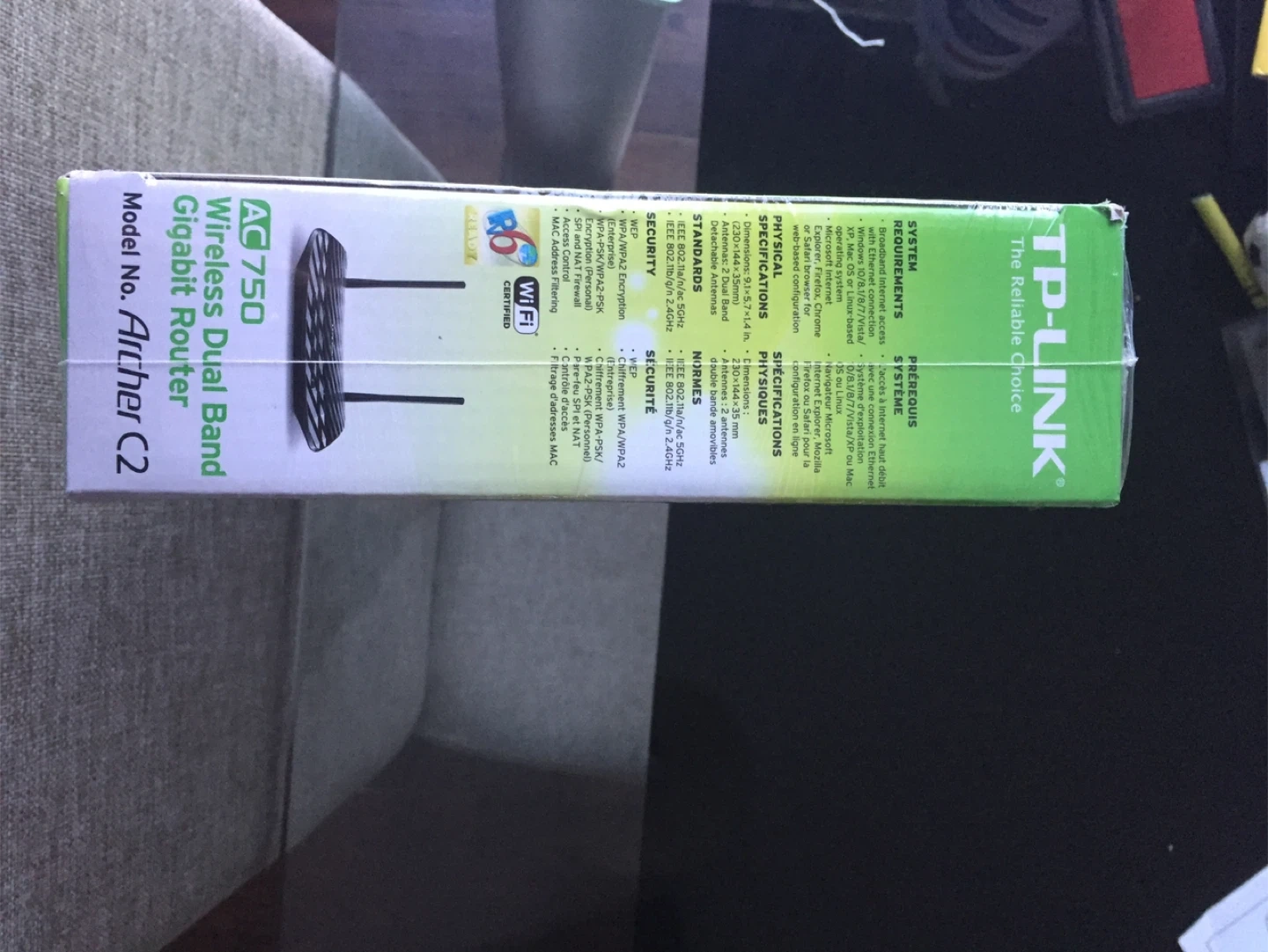 TP-Link AC750 Wireless Dual Band Gigabit Router. It's a dual-band router with 433Mbps on 5GHz and 300Mbps on 2.4GHz. Features gigabit Ethernet ports and includes 2 antennas. Great for home networking!