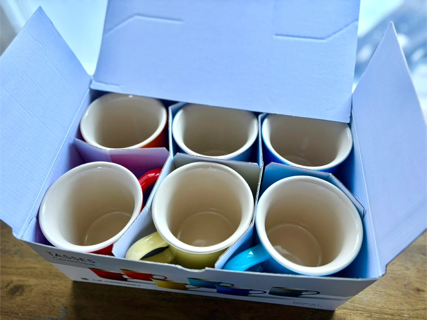 Selling a set of Le Creuset mugs! This set includes six mugs in a variety of vibrant colours. They come in the original box and would make a lovely addition to your kitchen or a thoughtful gift. The mugs are each 400ml (14oz). Attached a screenshot of Amazon page for reference. Please feel free to message me if you need more details!