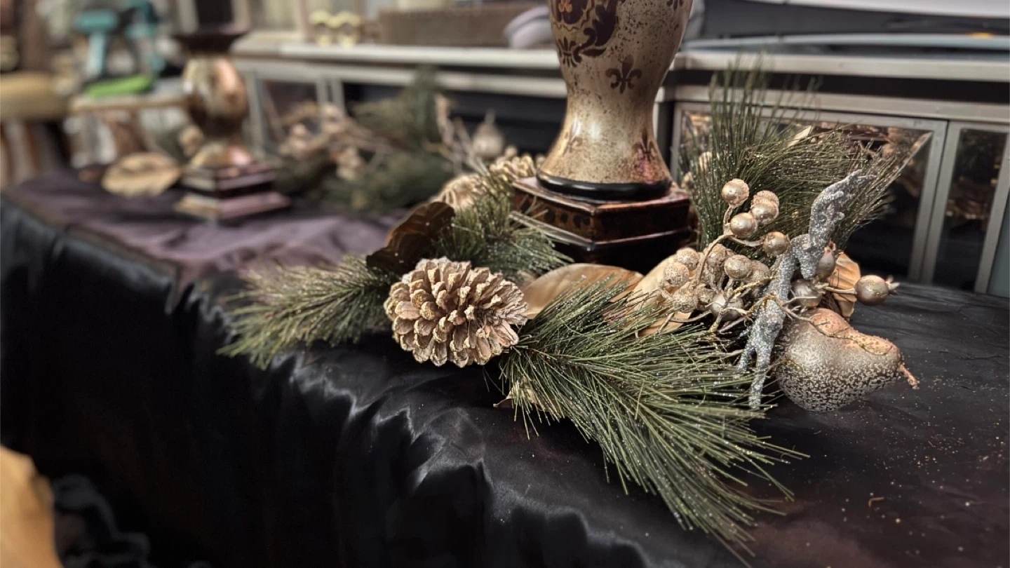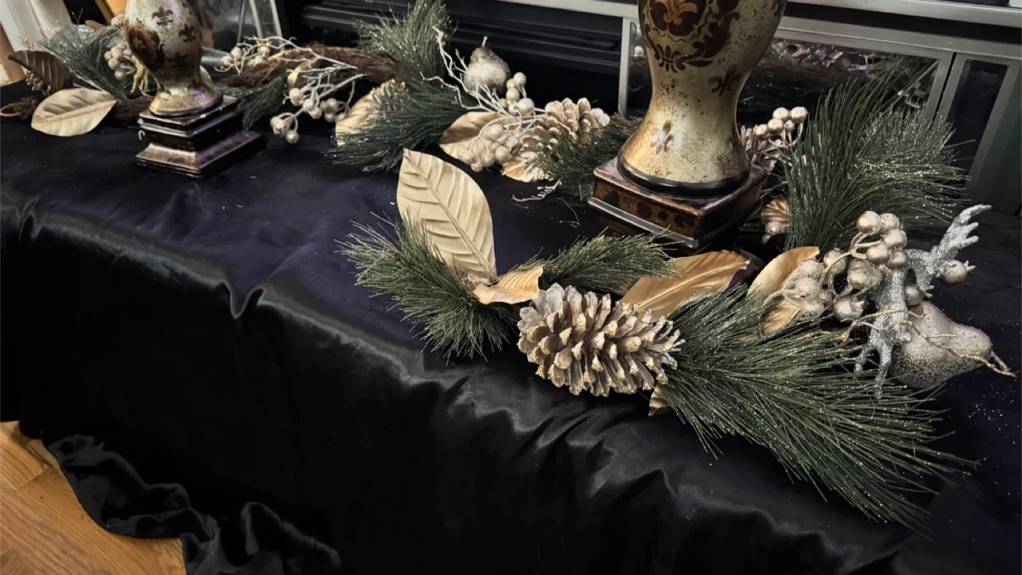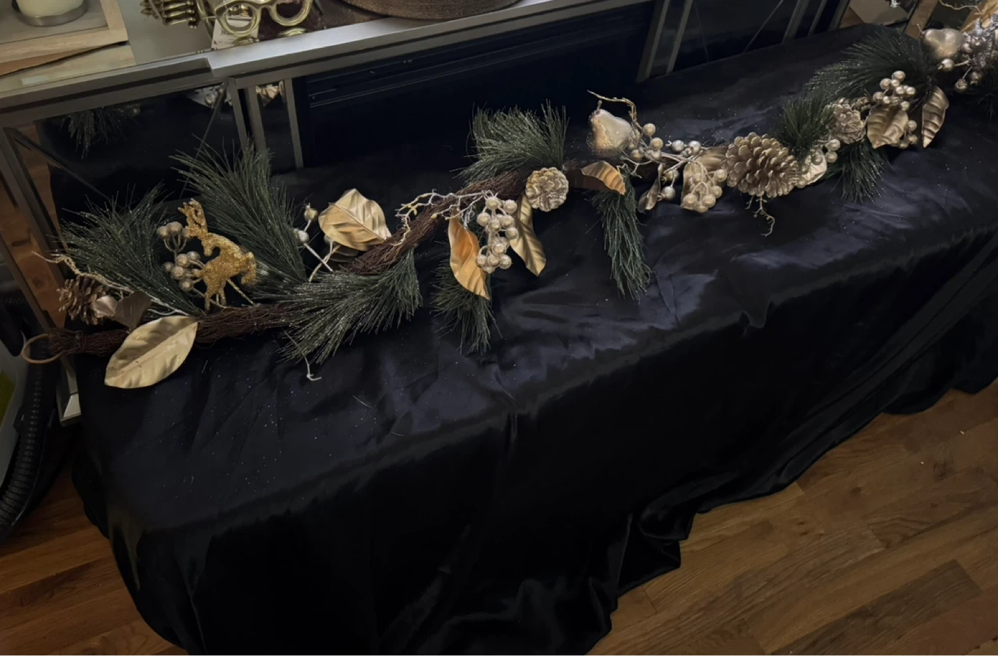 Selling a lovely Christmas garland decoration. It features pinecones, leaves, and festive embellishments. Perfect for adding a touch of holiday cheer to your home!