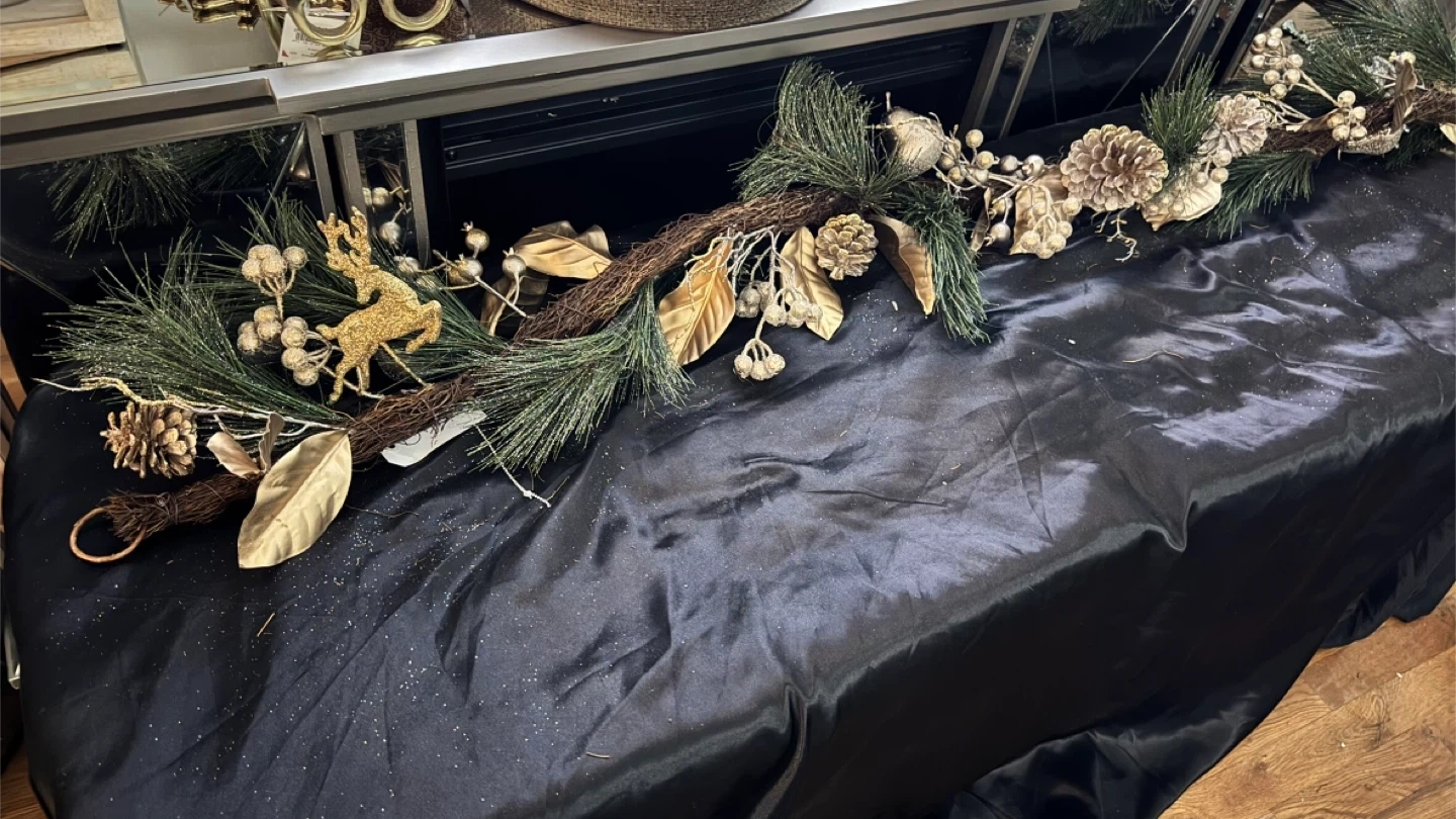 Selling a lovely Christmas garland decoration. It features pinecones, leaves, and festive embellishments. Perfect for adding a touch of holiday cheer to your home!