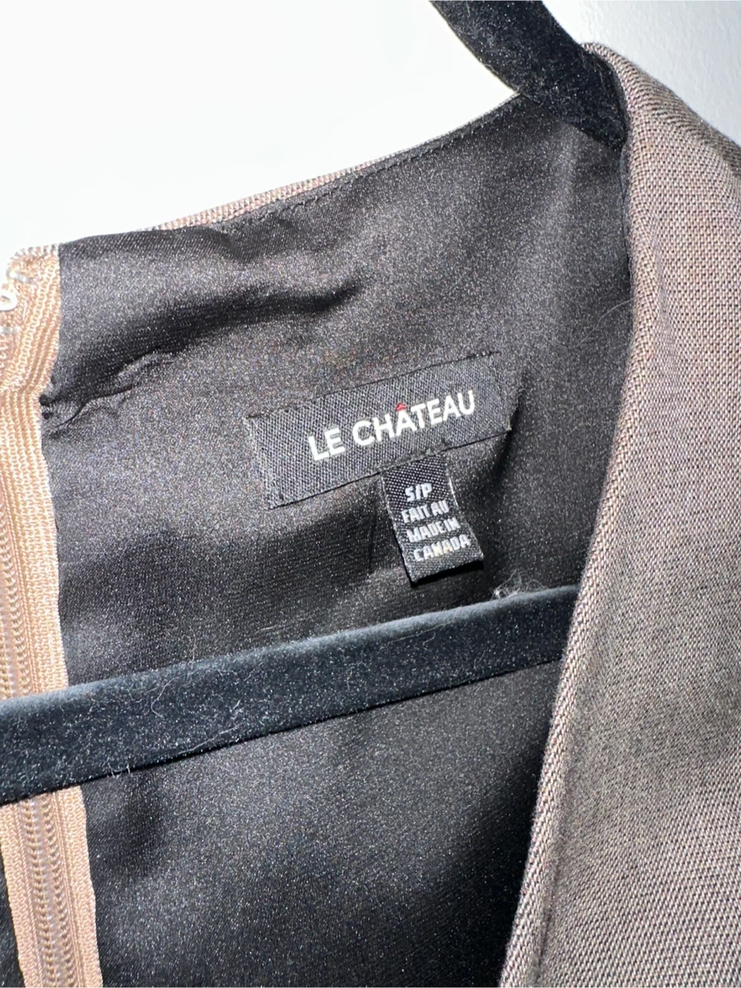 This is a LE CHATEAU elegant grey dress with a flared skirt. It no longer fits me, but has only been worn a few times.