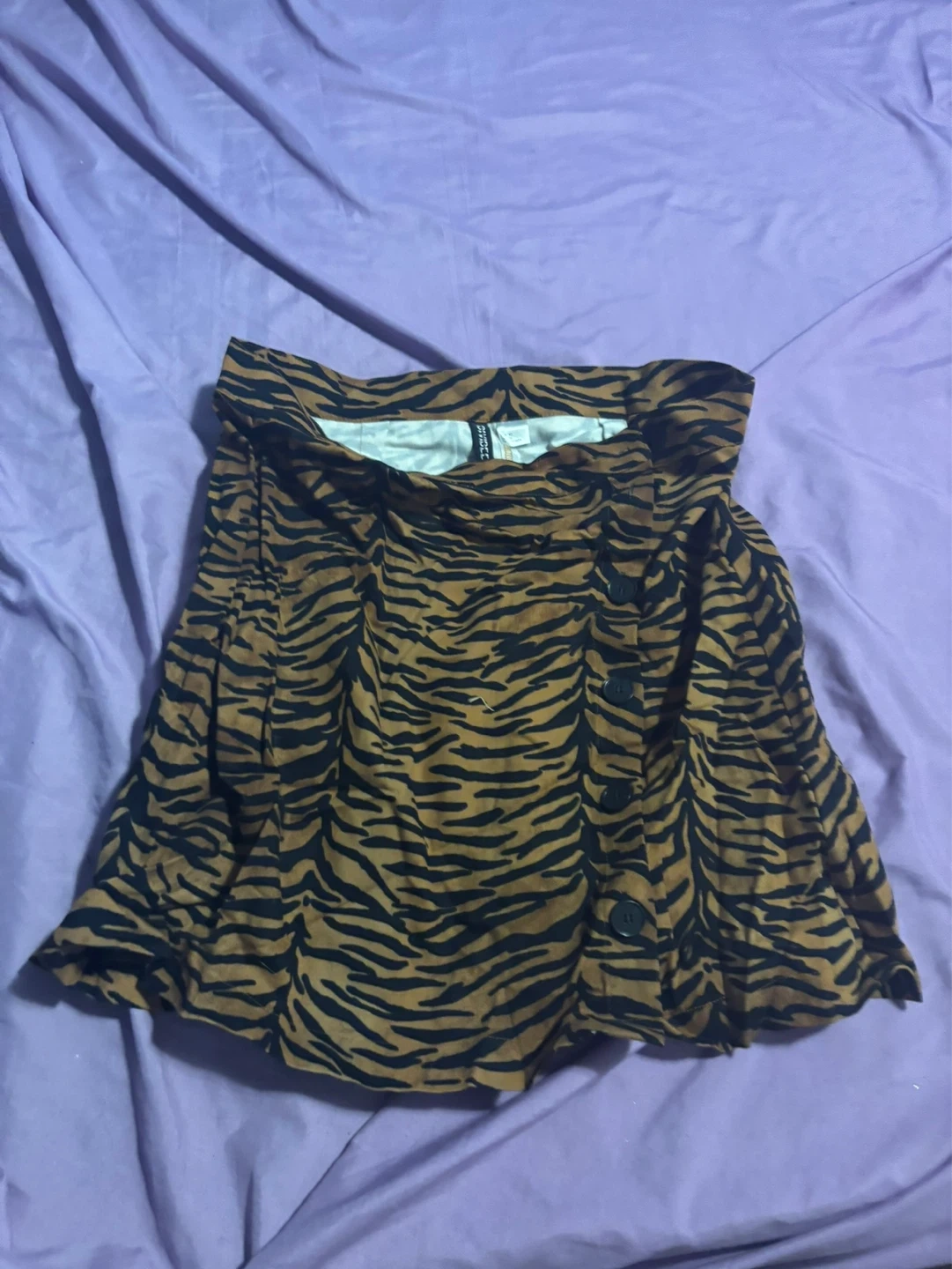 A stylish tiger print skirt from Divided. It features a button-up front and a comfortable fit. Size is 14.