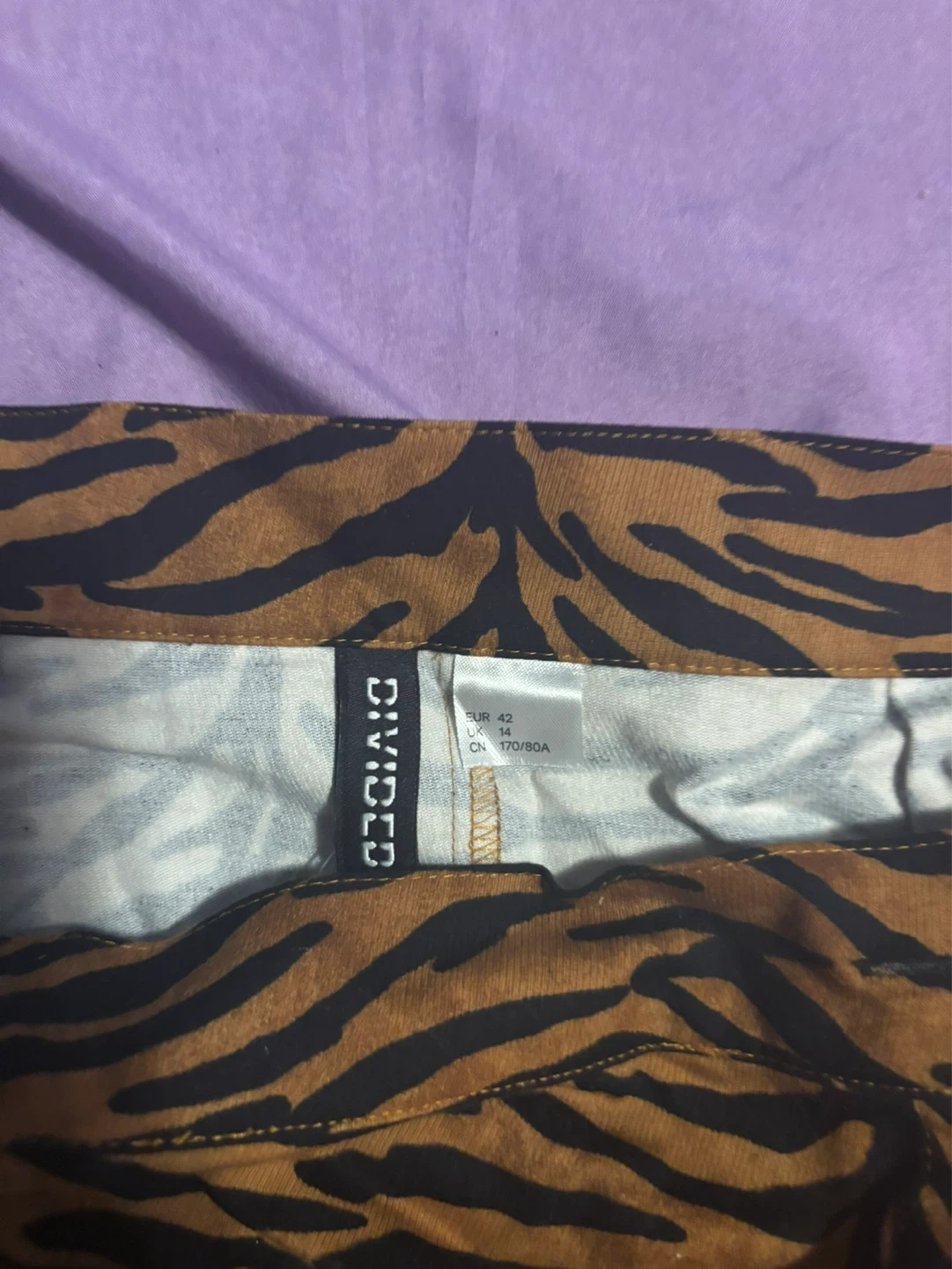 A stylish tiger print skirt from Divided. It features a button-up front and a comfortable fit. Size is 14.