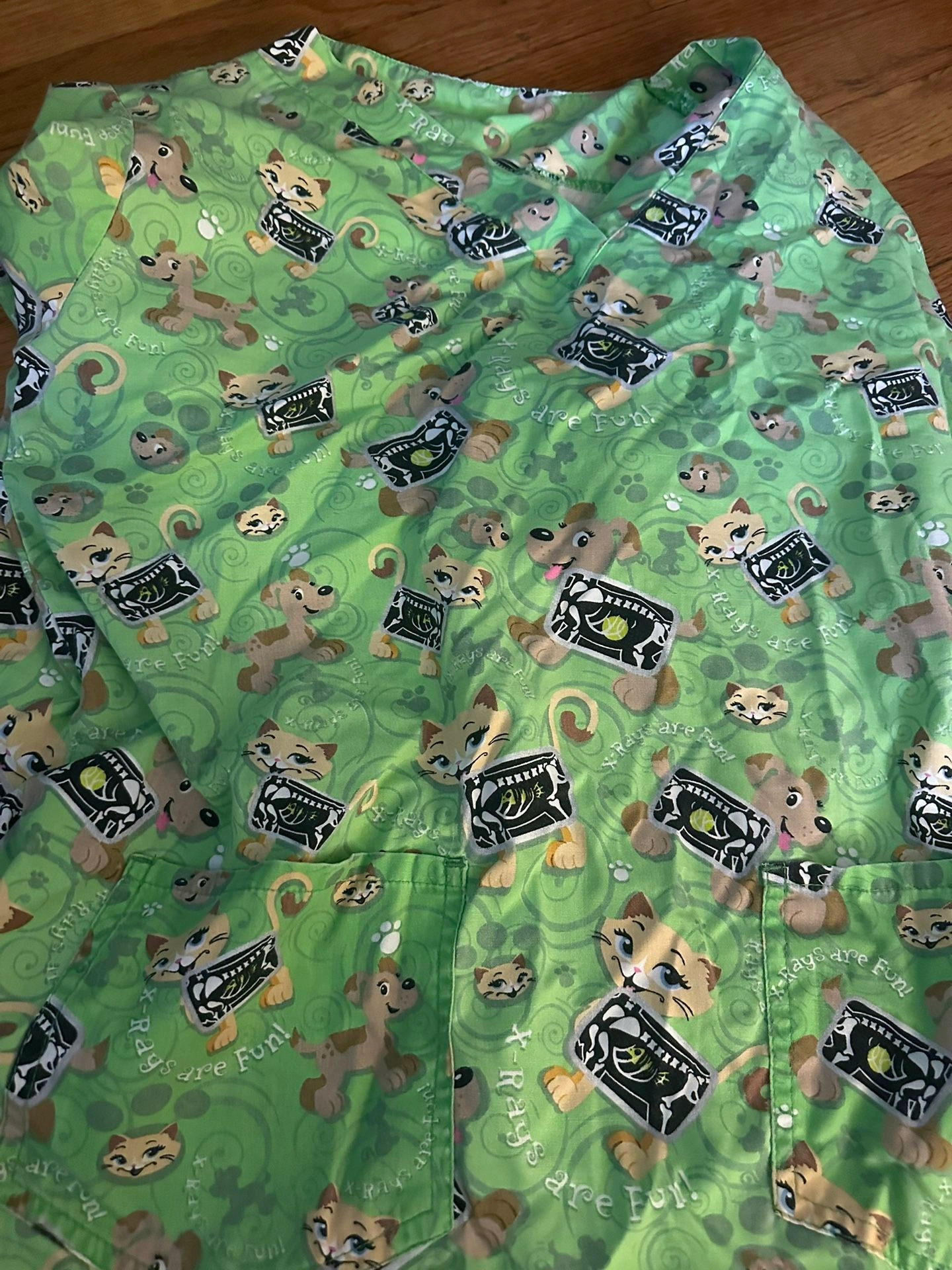 Women's Scrub Top - Small - Cats & Dogs X-ray Print