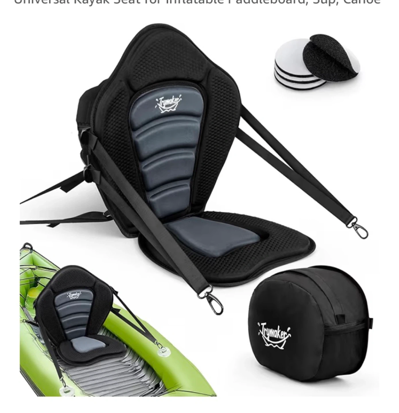This is a Trymaki universal kayak seat designed for comfort and support. It's made with durable materials and features adjustable straps for a secure fit.
