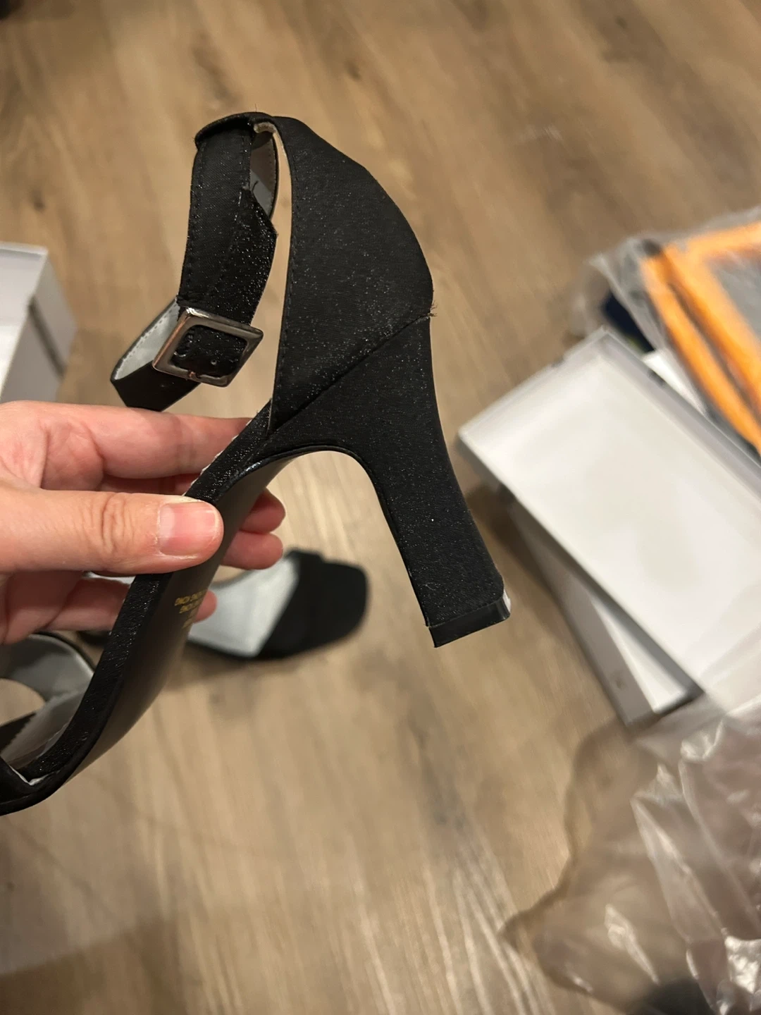These GALLEY heeled sandals are black with an ankle strap closure. The sandal has a fabric upper and a block heel. Perfect for dressing up an outfit!