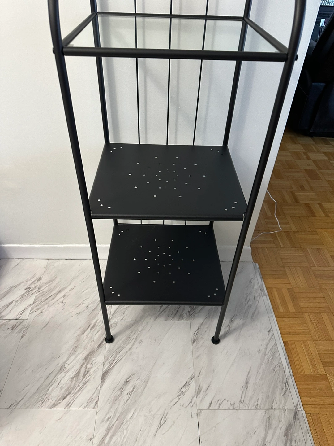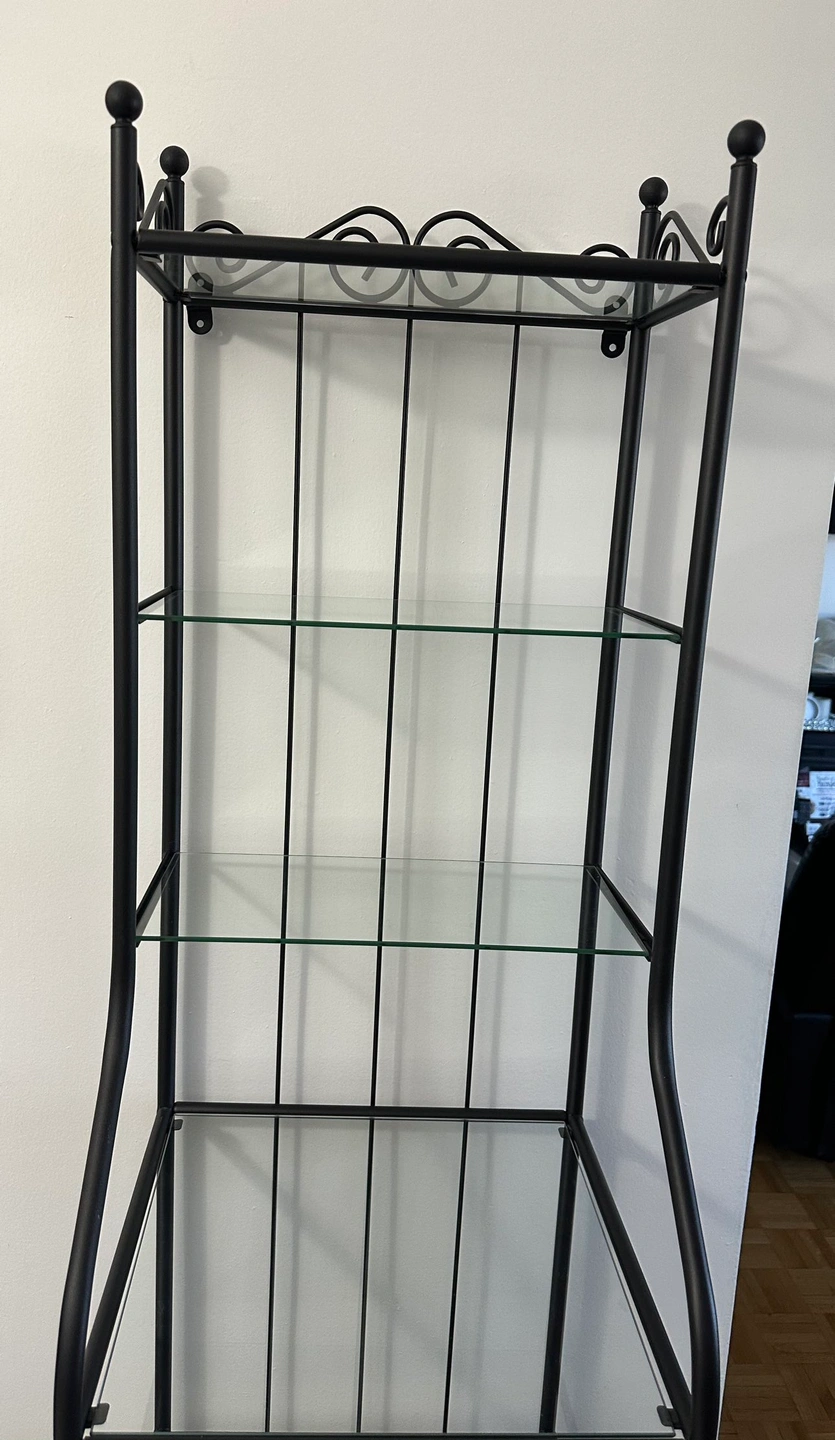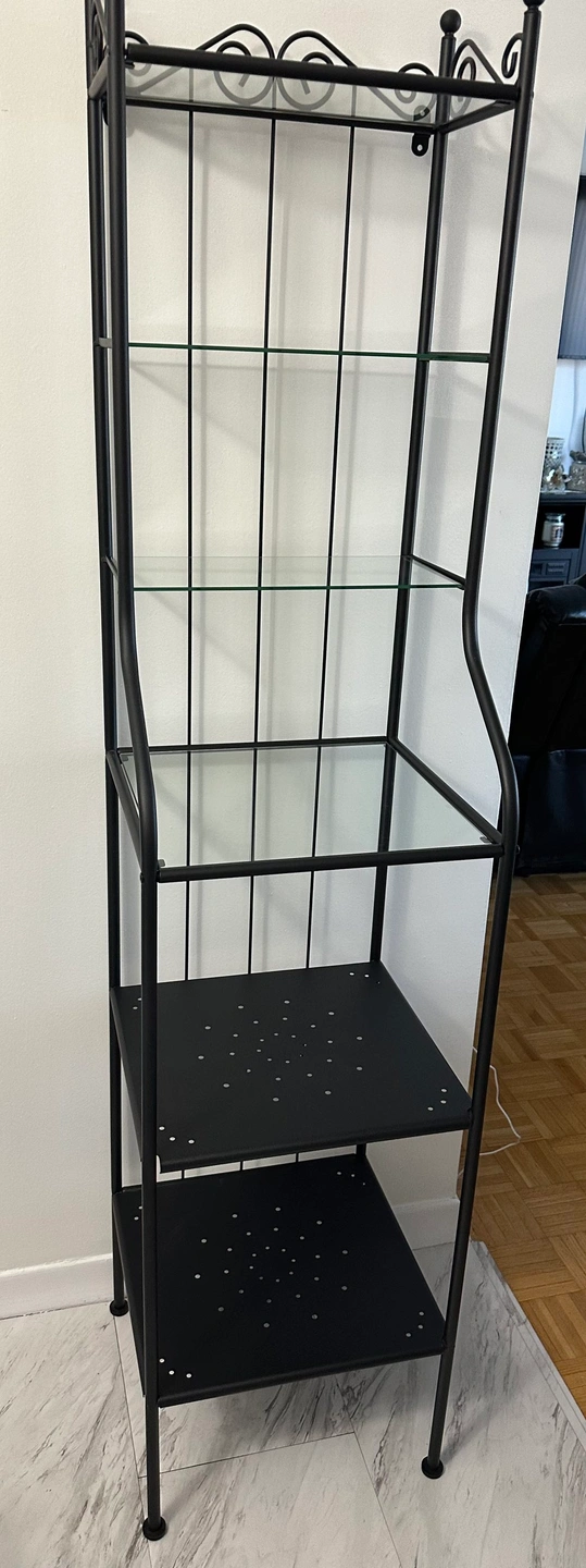 4 glass shelves 2 metal shelves 15 inches depth 16 inches wide 68 1/2 inches height