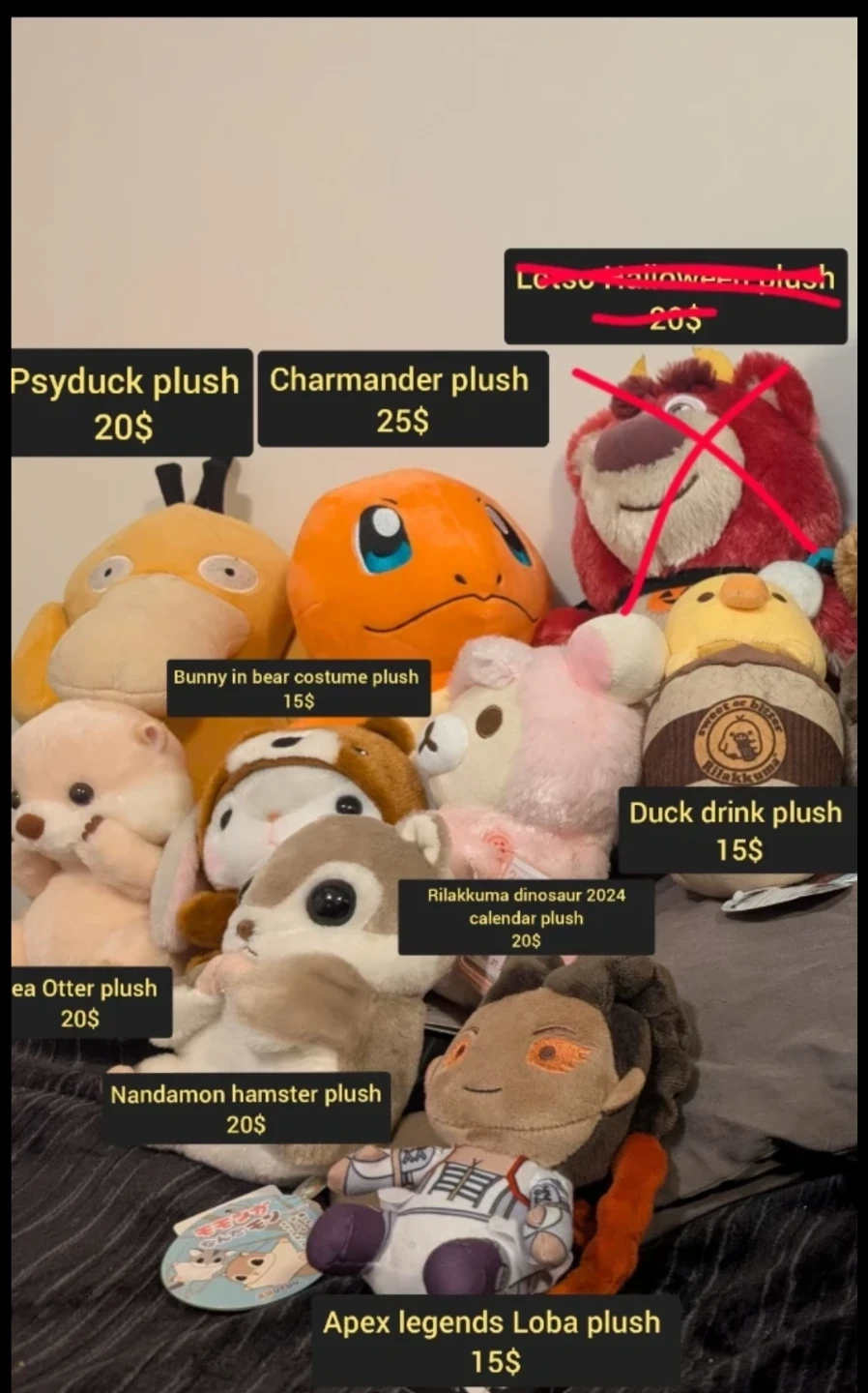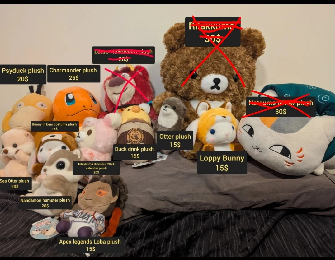 Buy & SellVarious plushies from 15$-30$Various plushies from 15$-30$$25Various plushies ranging 15$-30$ each. Perfect gift for your special someone! More detailed pictures can be provided if desired.WHERE TO MEETdowntown JasperView MapSELLERLogan AndrewsDowntown150 reviews1 chats·0 favorites·26 viewsSEND CHAT TO SELLERHi Logan Andrews! I’m interested in your listing.Hi Logan Andrews! I’m interested in your listing.Get the Karrot app to chatSign In to chat