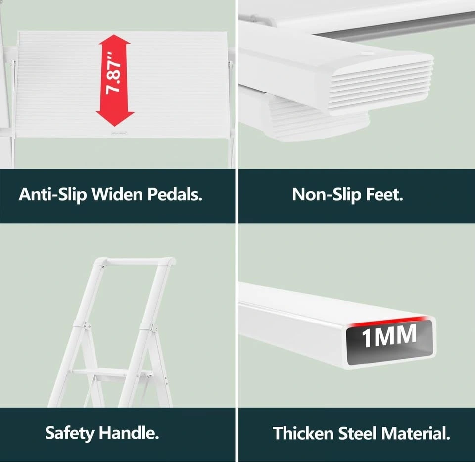 Easy to use: Comes fully assembled; Can be easily opened and folded in secs; The handgrip at the top help keeps balance when climbing.