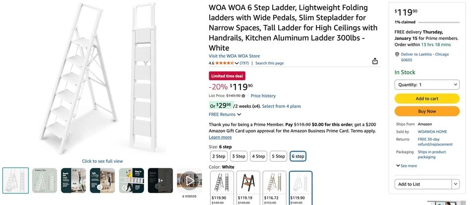 Orig $149 Used in great condition 6-step 12-foot white ladder