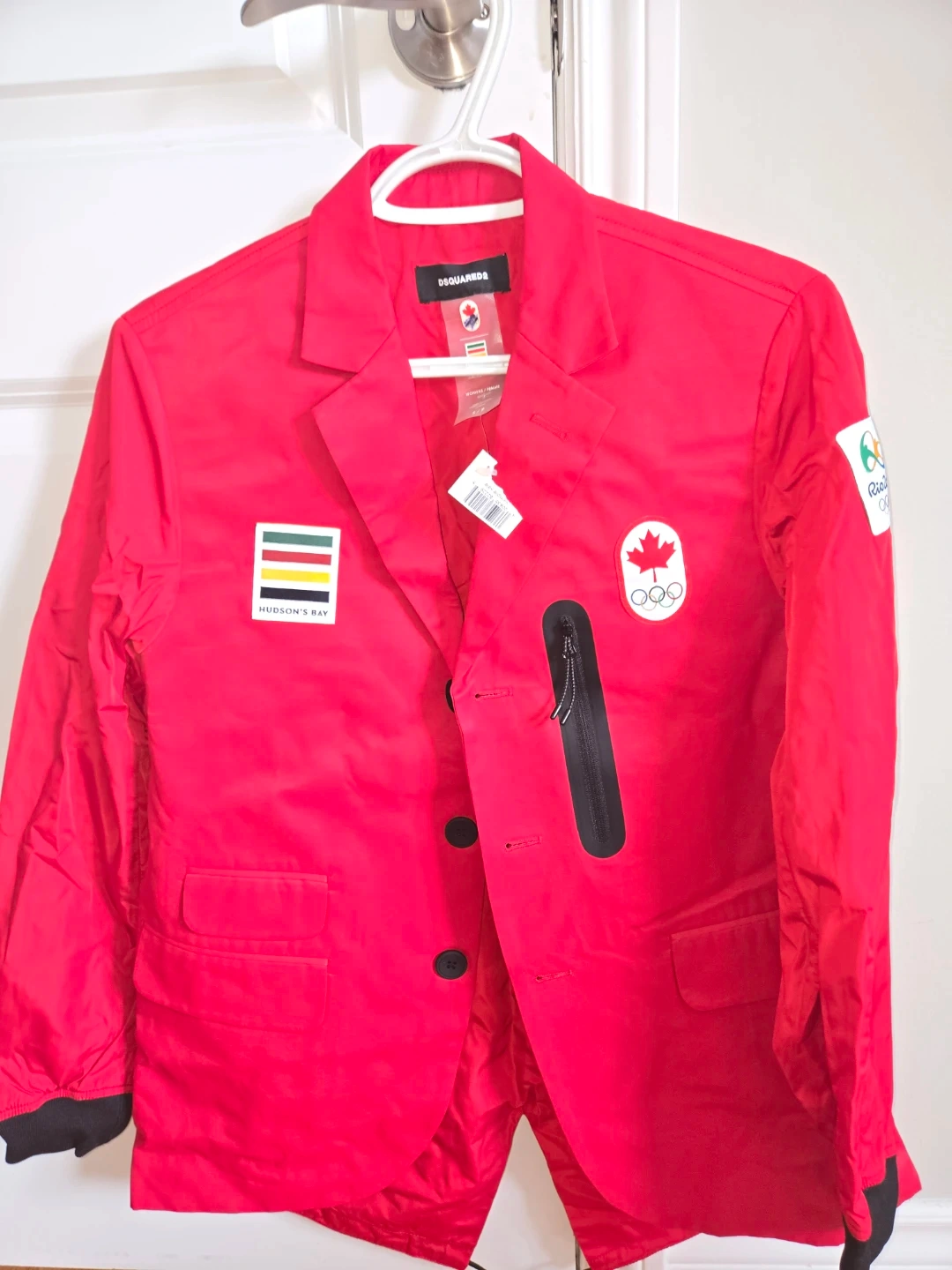 10Selling a Dsquared2 Hudson's Bay Rio 2016 Olympics jacket in size small. It's a vibrant red colour with Canadian flag and Olympic details. Perfect for showing your Canadian pride!