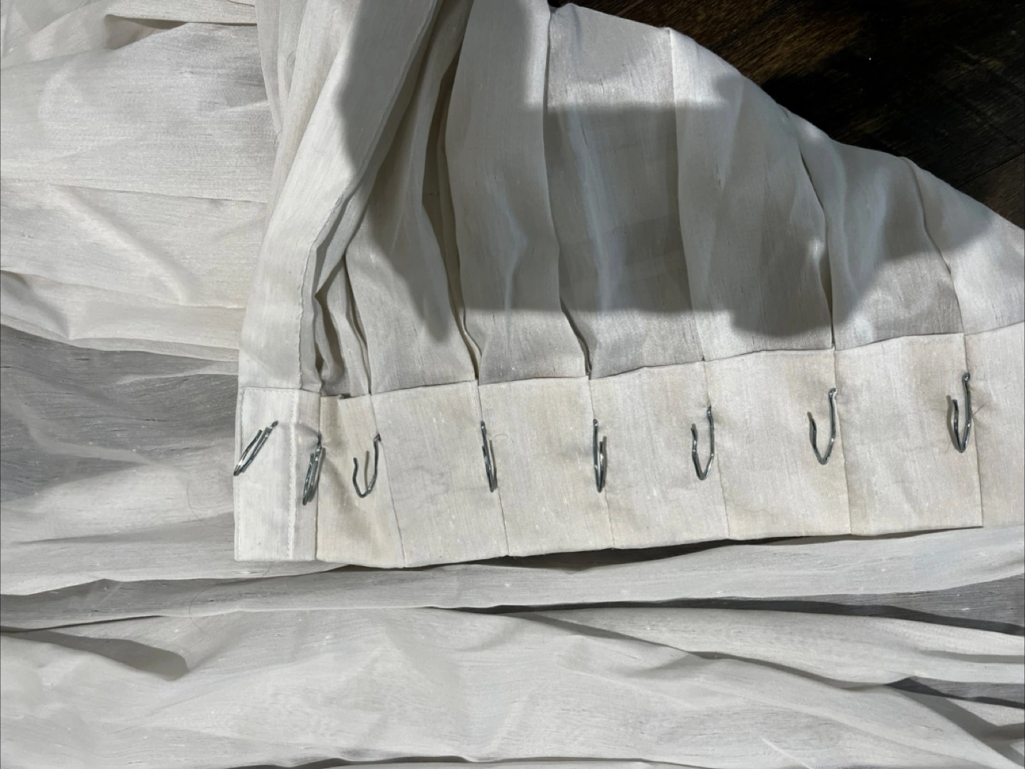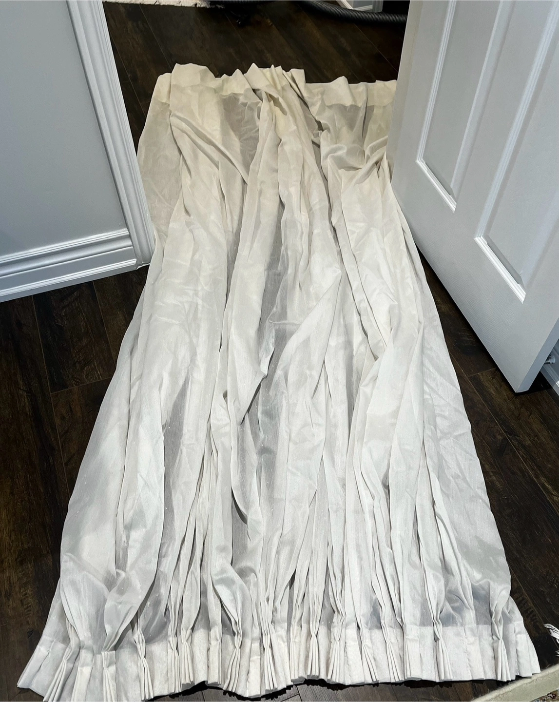 Selling a set of white sheer curtains. They have a subtle shimmer and are in great condition. Perfect for adding a light and airy feel to any room!