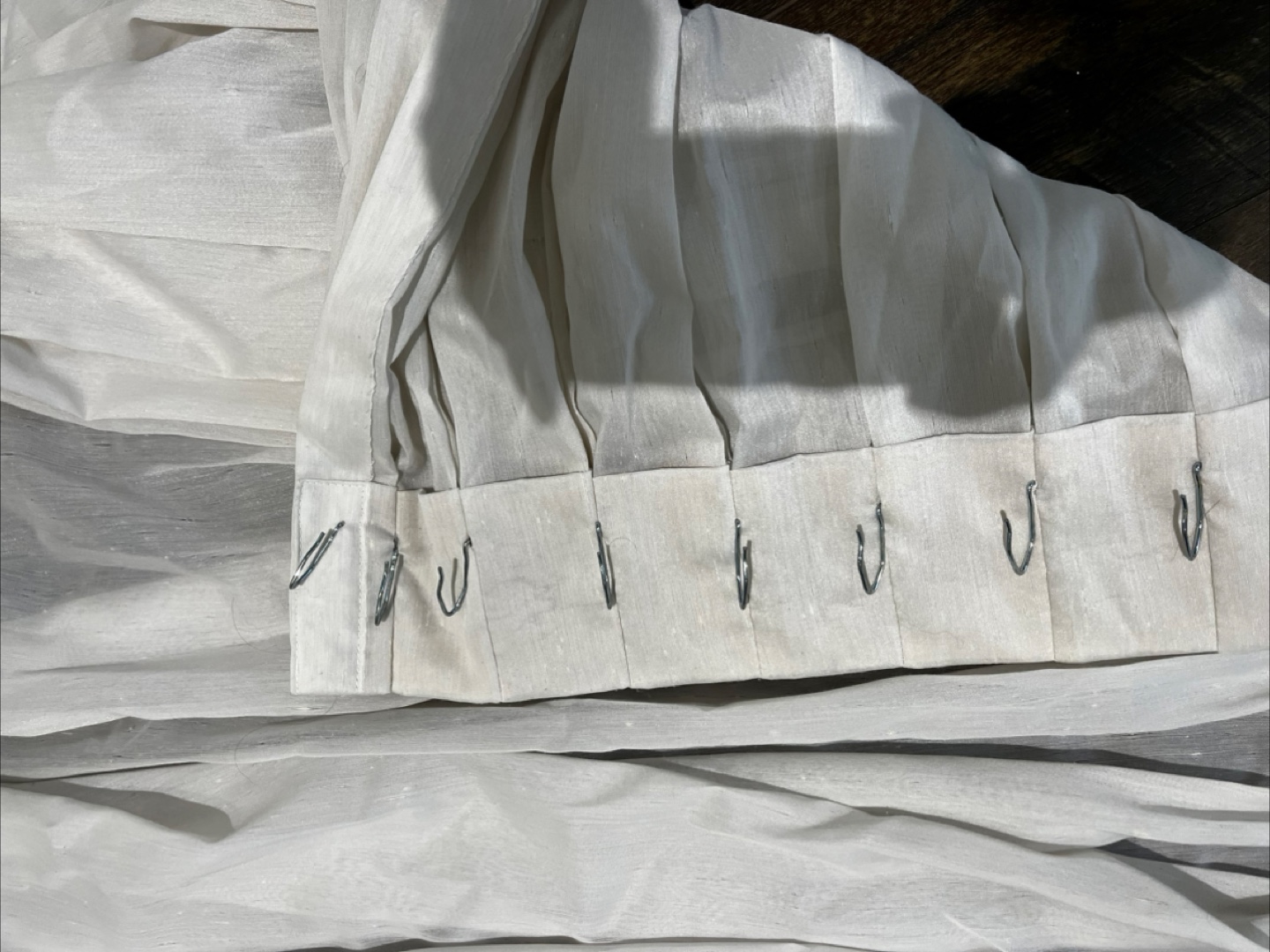 Selling a set of white sheer curtains. They have a subtle shimmer and are in great condition. Perfect for adding a light and airy feel to any room!