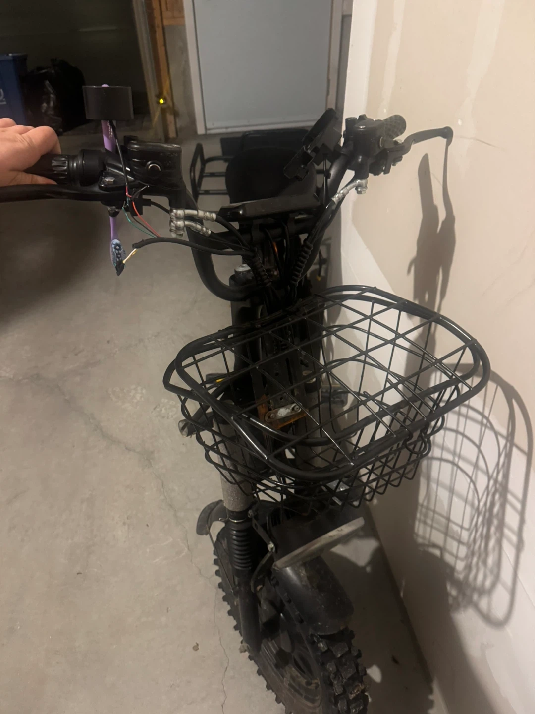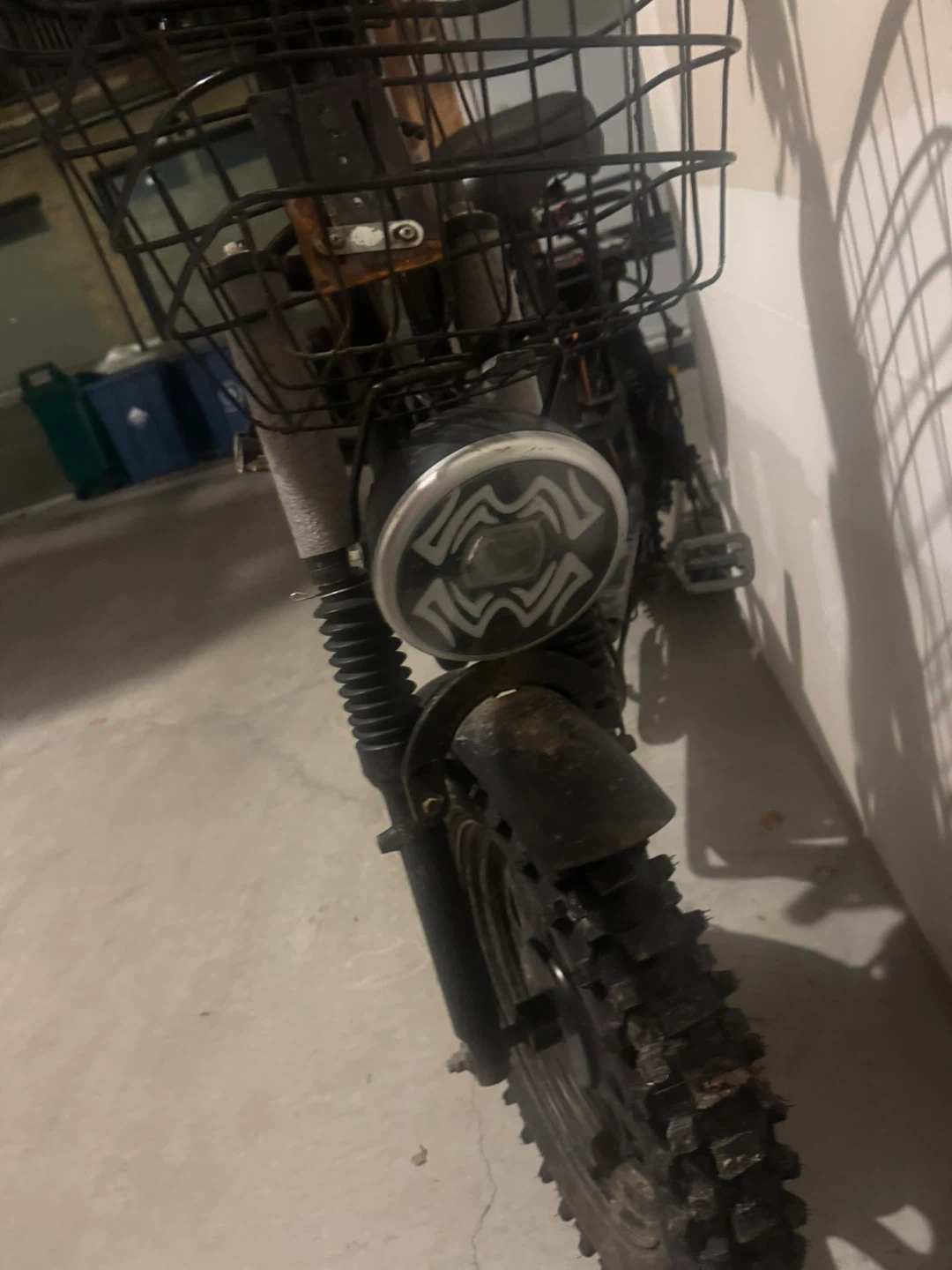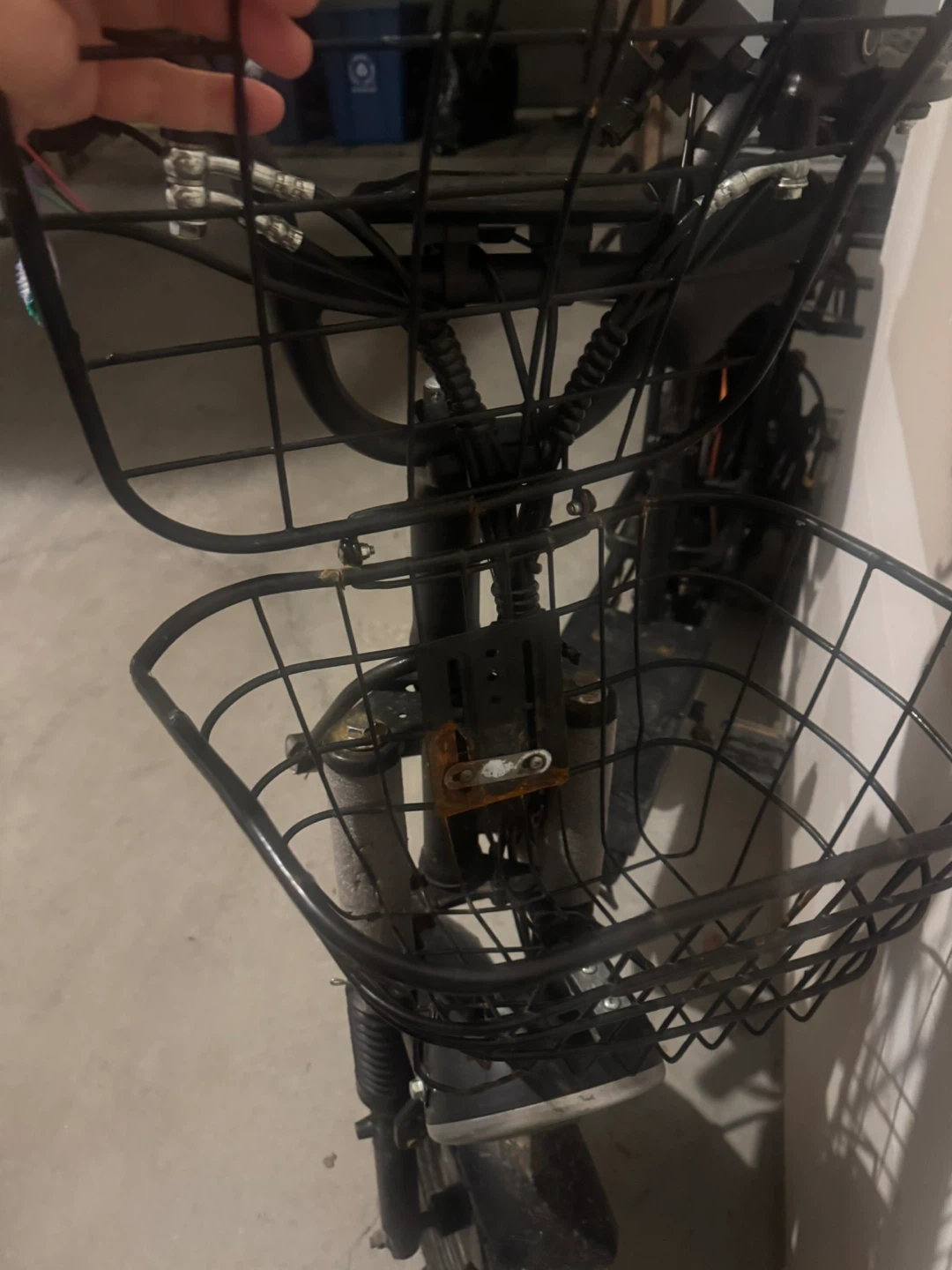 Cargo Motors 100X electric scooter with front and rear baskets. It's black and has a sturdy frame for carrying items. Great for quick errands or deliveries!