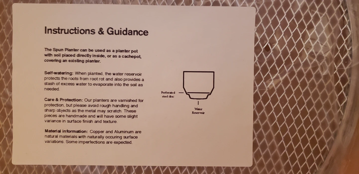 Self-drainage feature; includes instructions and guidance. Good for indoor fig tree, palm trees, or similar indoor plants that are tall or wide.
