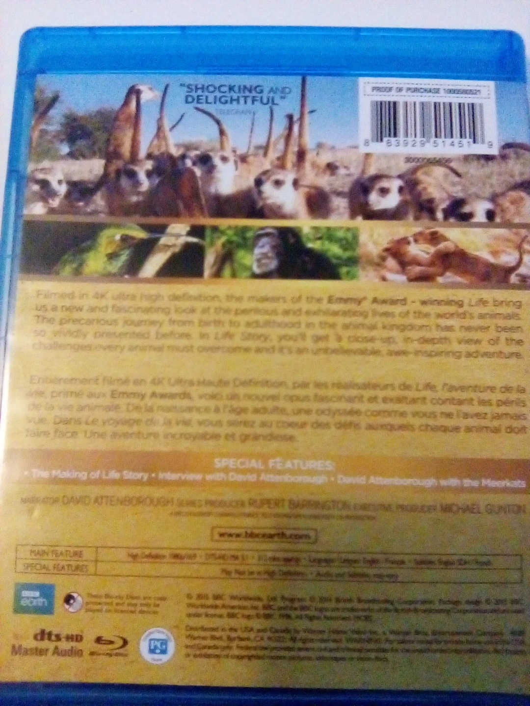 A 4K Ultra HD Blu-Ray of BBC Earth's Life Story documentary. Narrated by David Attenborough, it explores the animal kingdom. Includes special features.