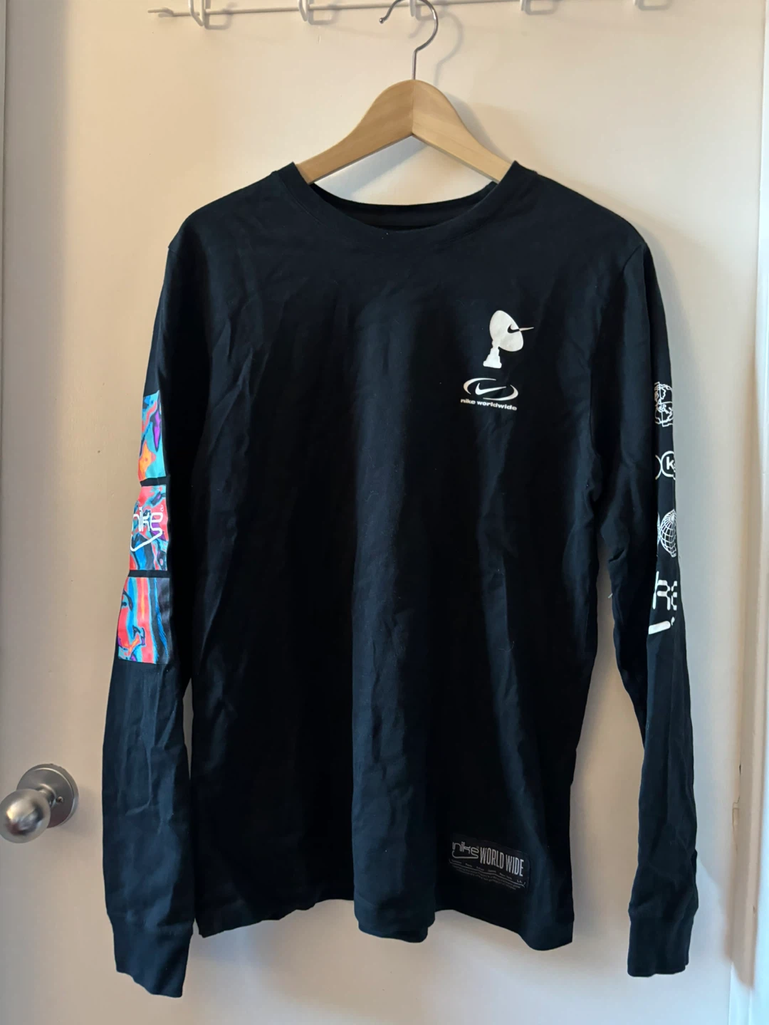 Buy & SellNike Long Sleeve ShirtNike Long Sleeve Shirt$5Black long sleeve Nike shirt with graphics on the sleeves and chest, worn twice Size medium, regular fitConditionNewSizeMediumBrandNikeWHERE TO MEETKensington MarketView MapSELLERverifiedGabeKensington1589 reviews1 chats·1 favorites·48 viewsSEND CHAT TO SELLERHi Gabe! I’m interested in your listing.Hi Gabe! I’m interested in your listing.Get the Karrot app to chatSign In to chat