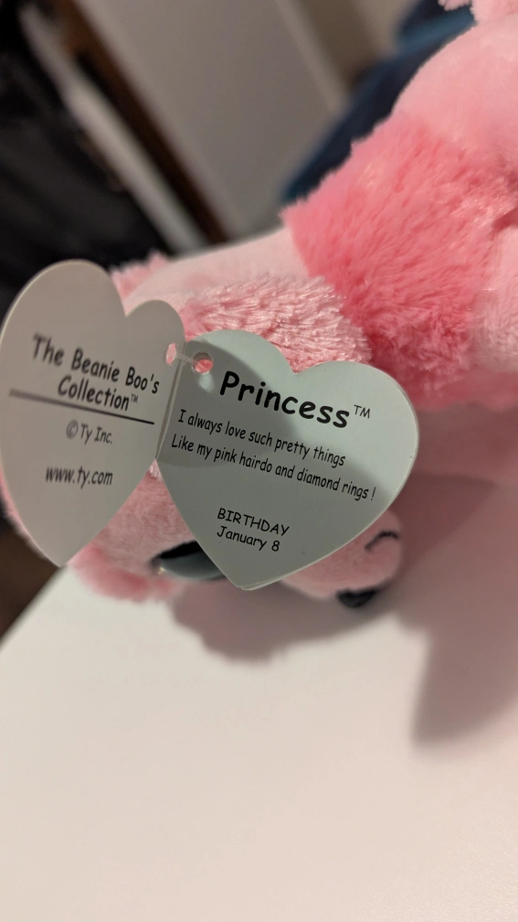 Buy & SellTy Beanie Boo's Princess the PoodleTy Beanie Boo's Princess the Poodle$20Pink plush poodle. Large, sparkly eyes. Attached Ty heart-shaped tag. Birthday: January 8. Collectible.ConditionLike newWHERE TO MEETHomeView MapSELLERHermineConcord150 reviews0 chats·0 favorites·4 viewsSEND CHAT TO SELLERHi Hermine! I’m interested in your listing.Hi Hermine! I’m interested in your listing.Get the Karrot app to chatSign In to chat