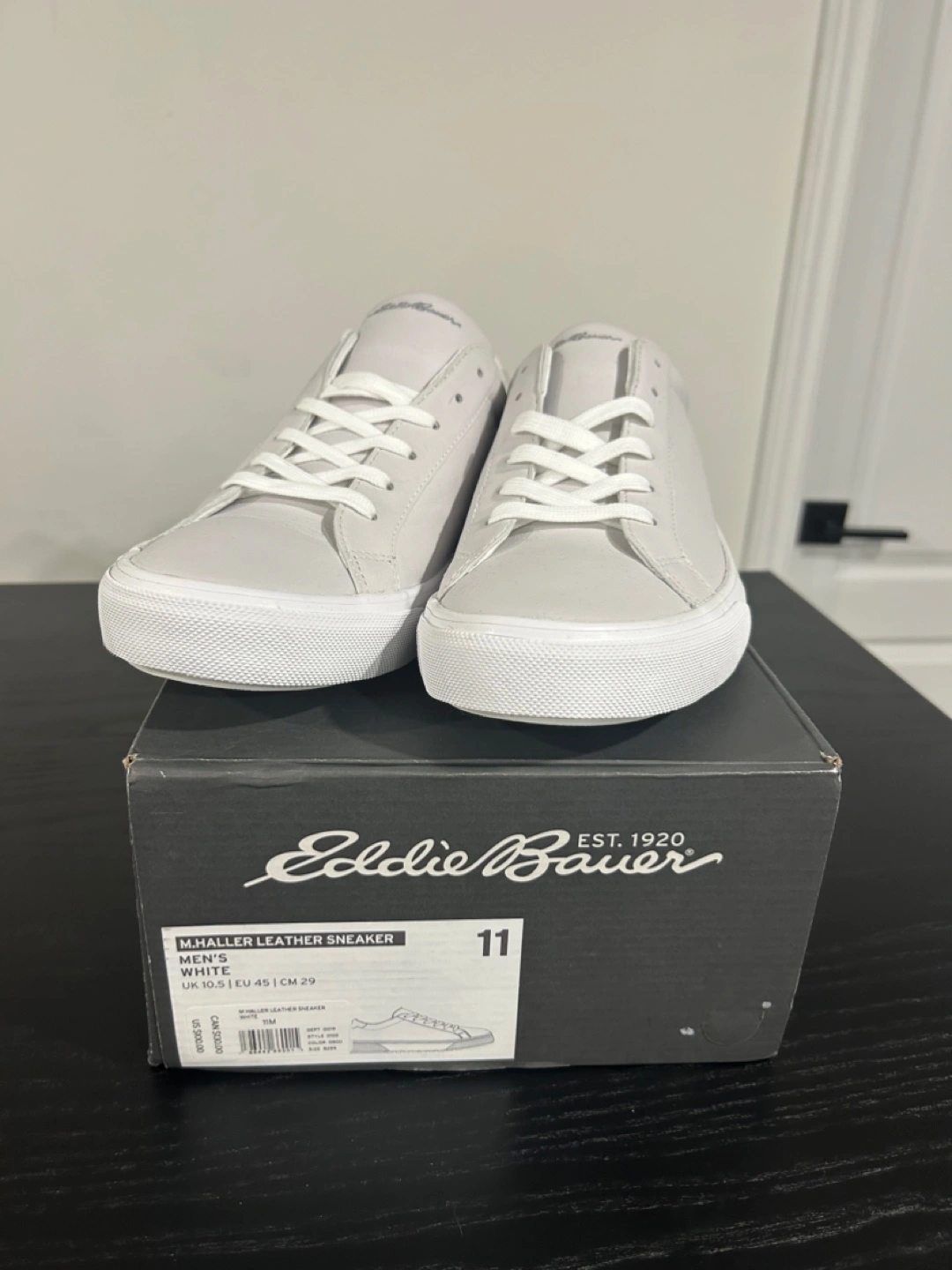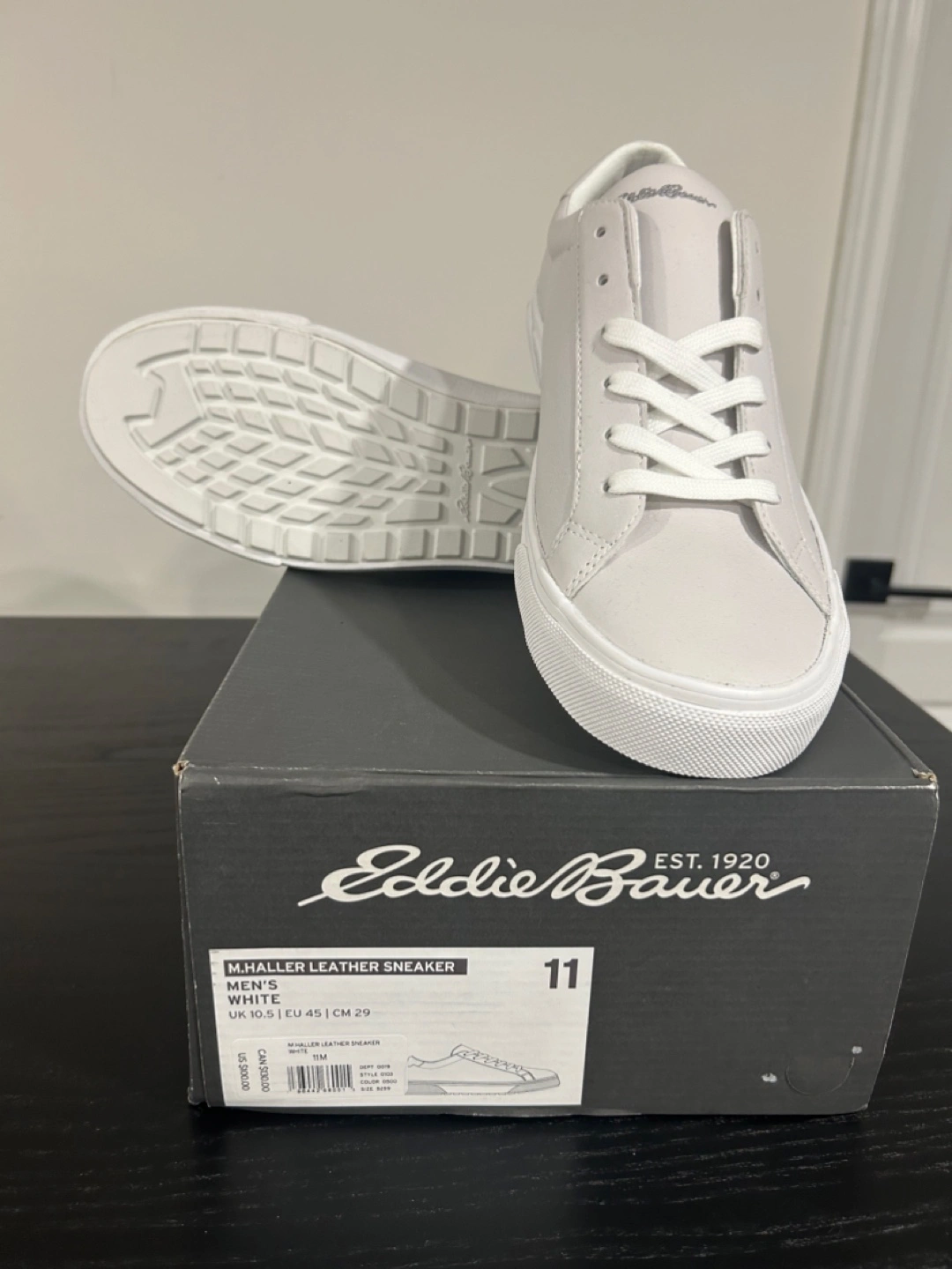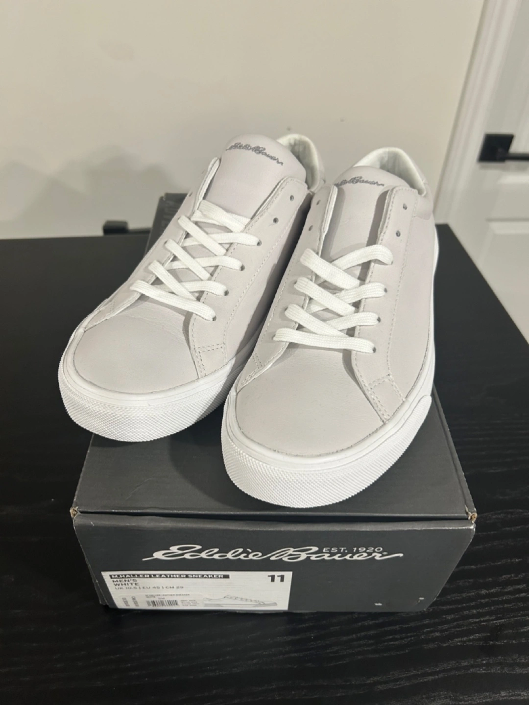Stylish, men's sneakers. They have white laces and a white sole. These shoes can provide a cozy and comforting feel for your feet.