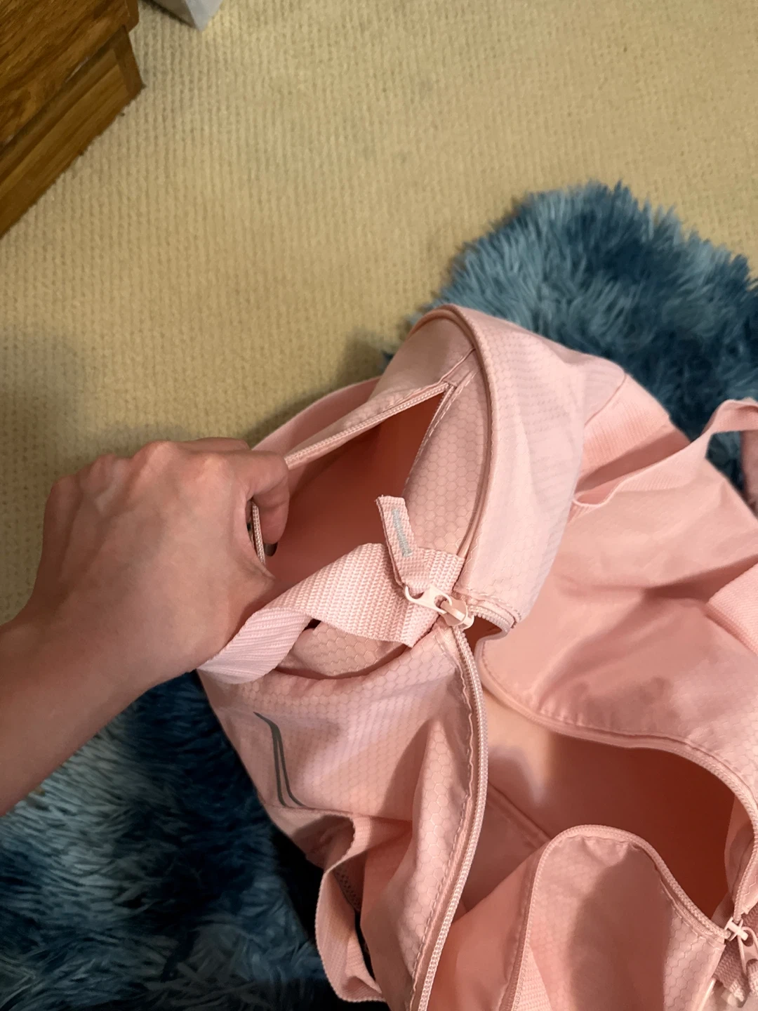 Selling a cute pink Nike gym bag! It's in great condition and perfect for carrying your workout gear or using as a weekend bag. It has a spacious interior and a few handy pockets to keep things organized