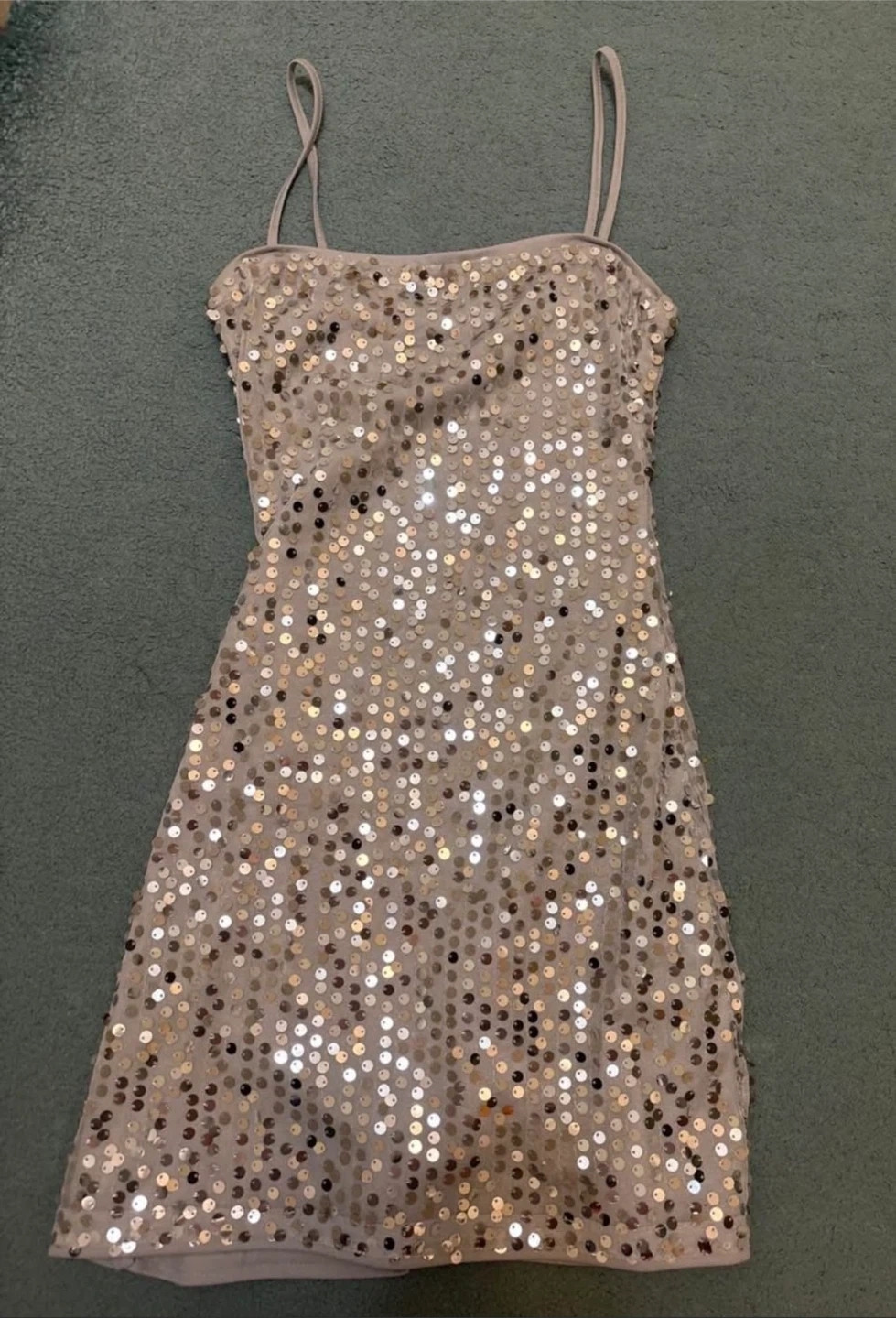 H&M Sparkly sequin dress with delicate spaghetti straps. It's perfect for a night out or a special occasion! Fits size XS.