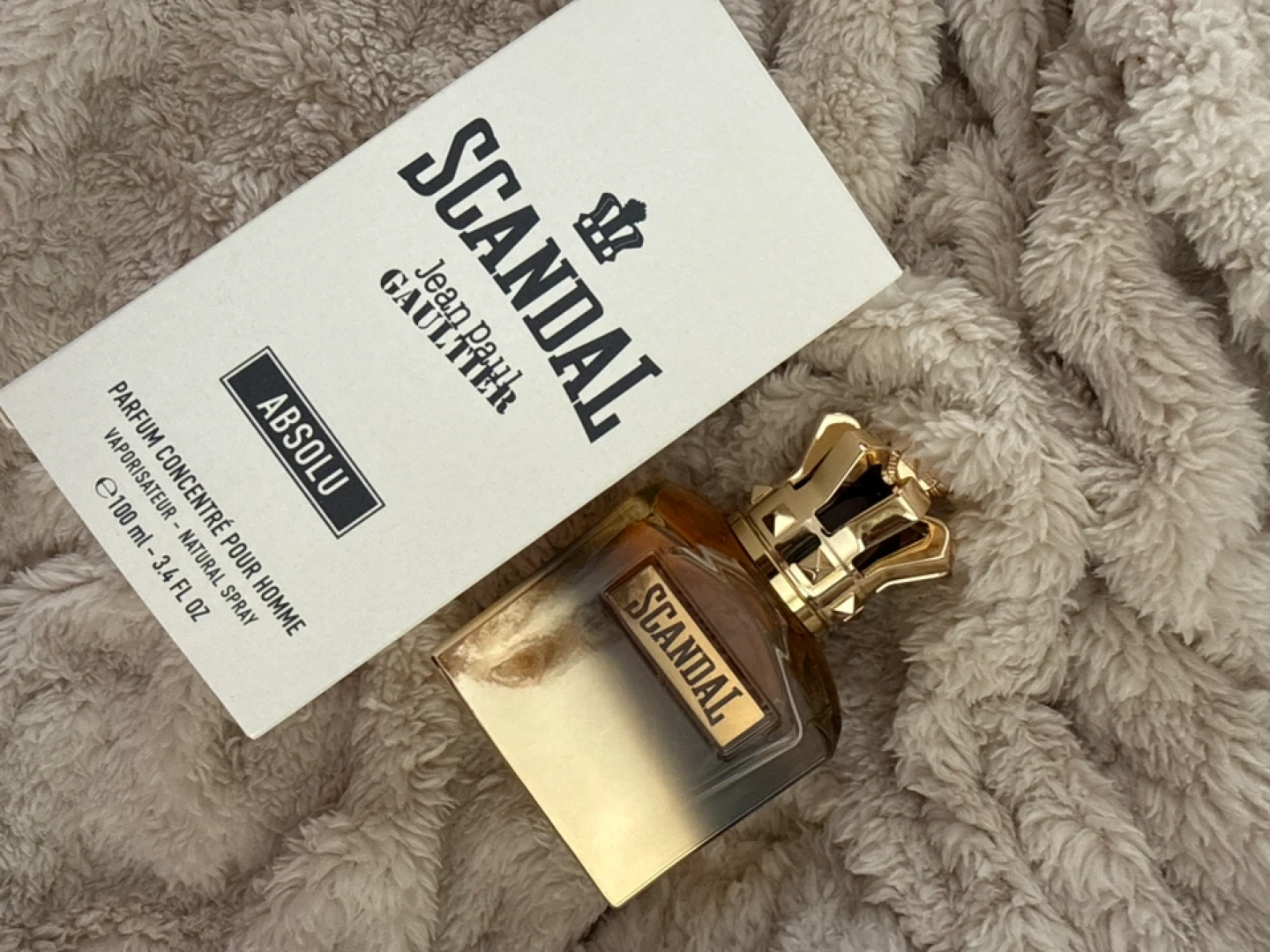 This is the Jean Paul Gaultier Scandal Absolu fragrance for men. It's a natural spray in a 100 ml (3.4 fl oz) bottle. The scent is designed for a bold and captivating presence.