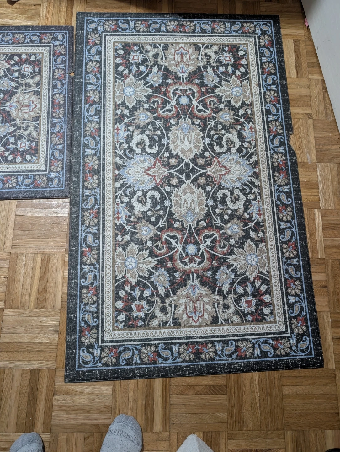 This set includes two kitchen fatigue mats with a vintage floral pattern. They feature a non-slip backing for added safety in the kitchen. These rugs add a touch of classic style to your home!