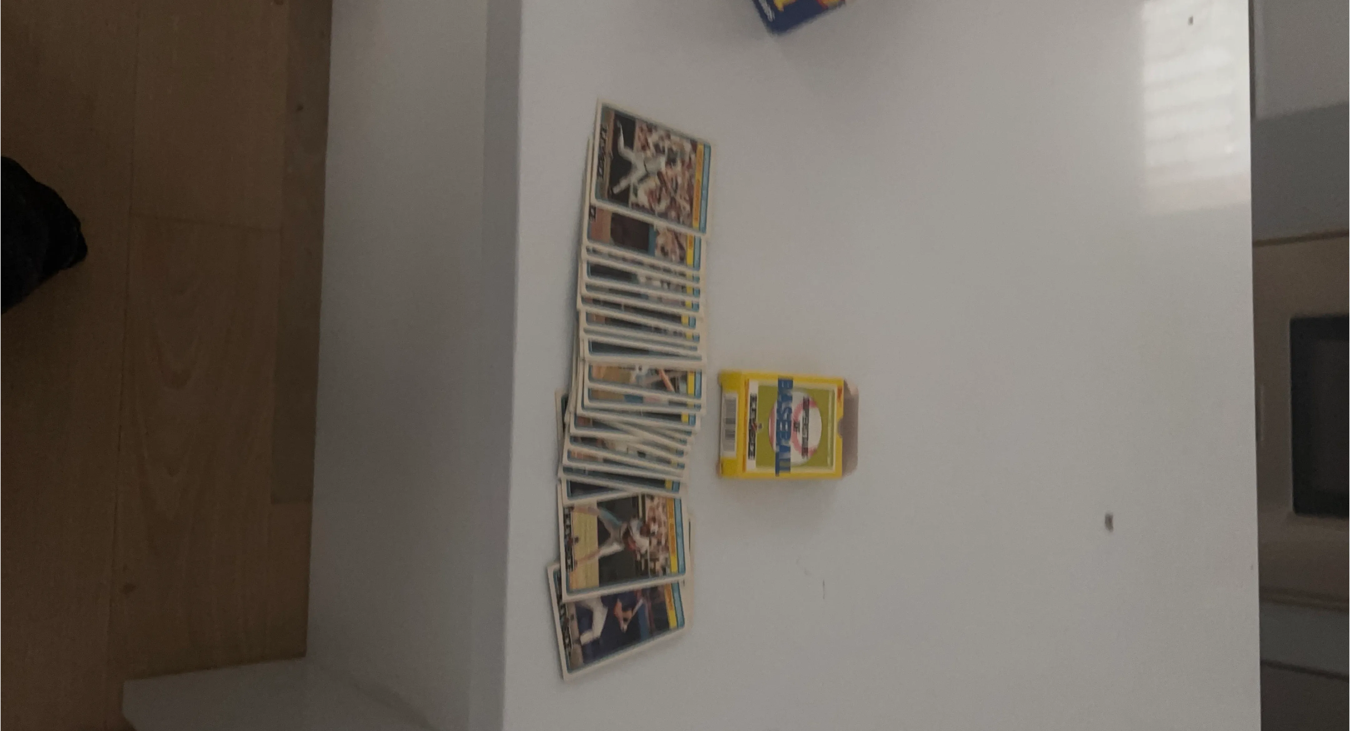 Collection of baseball cards and one unopened wax pack. Cards appear to be from the 1980s or early 1990s. Wax pack is yellow and blue with 'BASEBALL' text visible. A fun find for any collector!